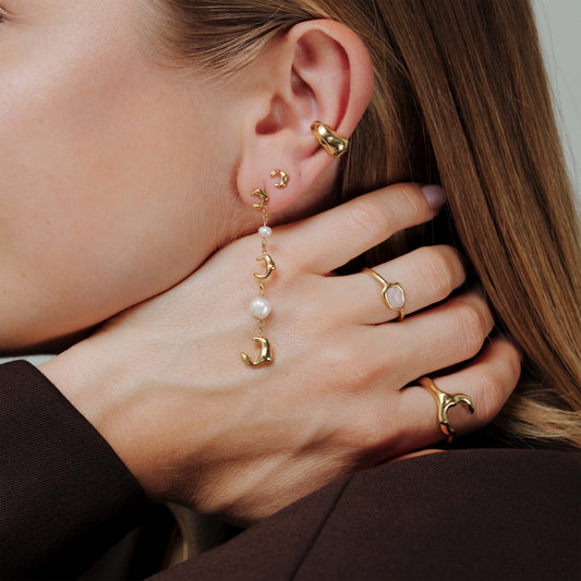 Jules Unique Pearl Fall Studs Gold