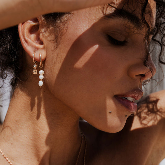 Chunky Pearl 'n' Beads Hoop Set Medium Gold