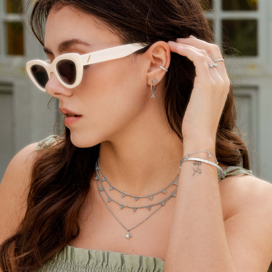 Chunky Pearl 'n' Beads Hoop Set Medium Silber