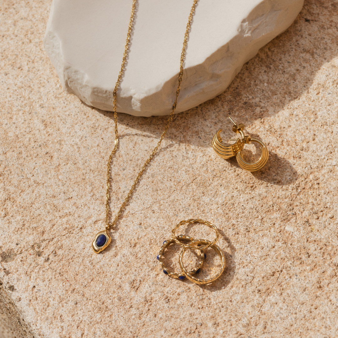 Bei dir darf etwas Farbe im Jewelry Game nicht fehlen? Dann wirst du unseren „Blue Bay“ Ring lieben! Die kreisrunden Elemente des Rings geben ihm eine verspielte Note und bilden mit den blauen Lasurit Steinen einen ganz besonderen, individuellen Stil der alles andere als langweilig ist. Don’t wait too long, go and get it!