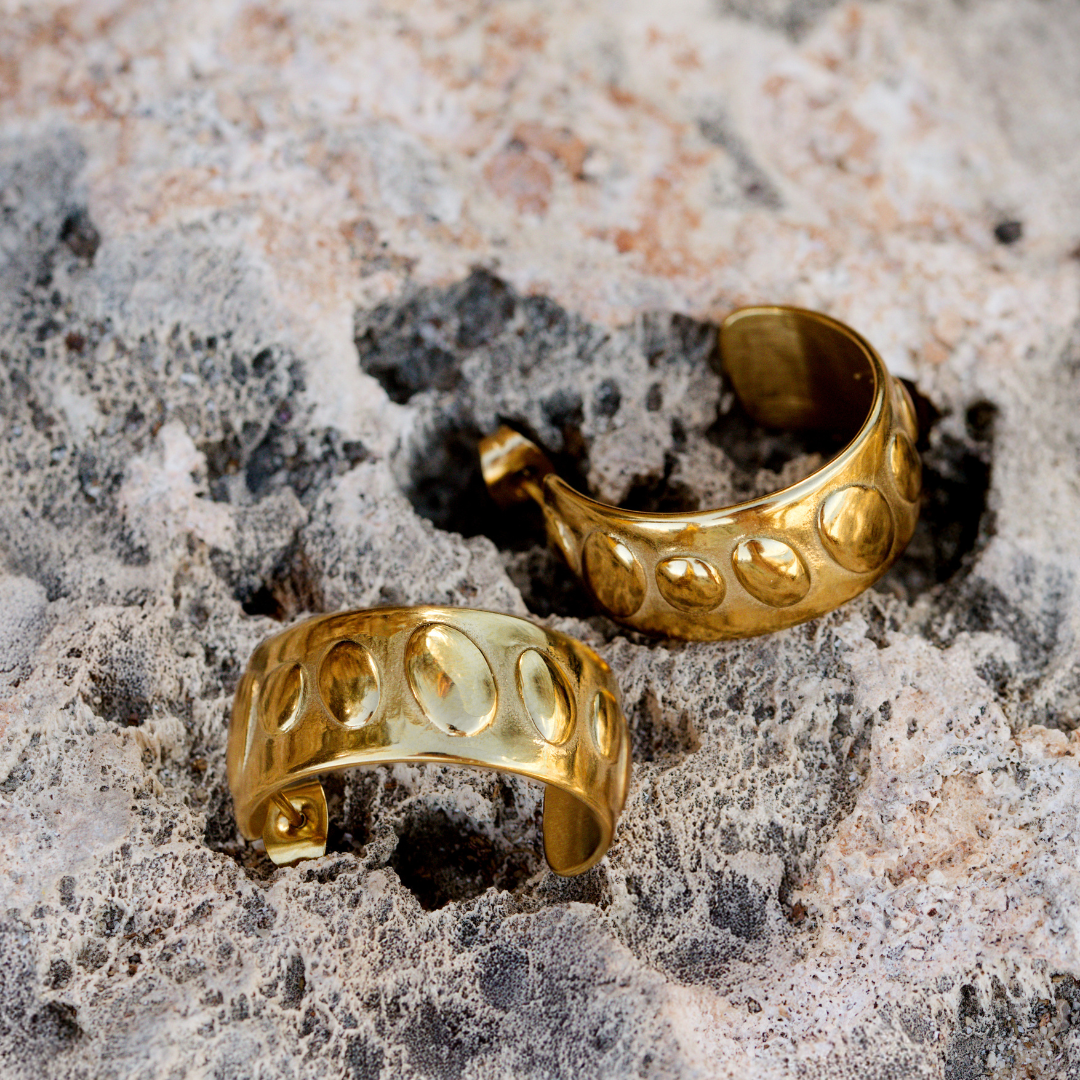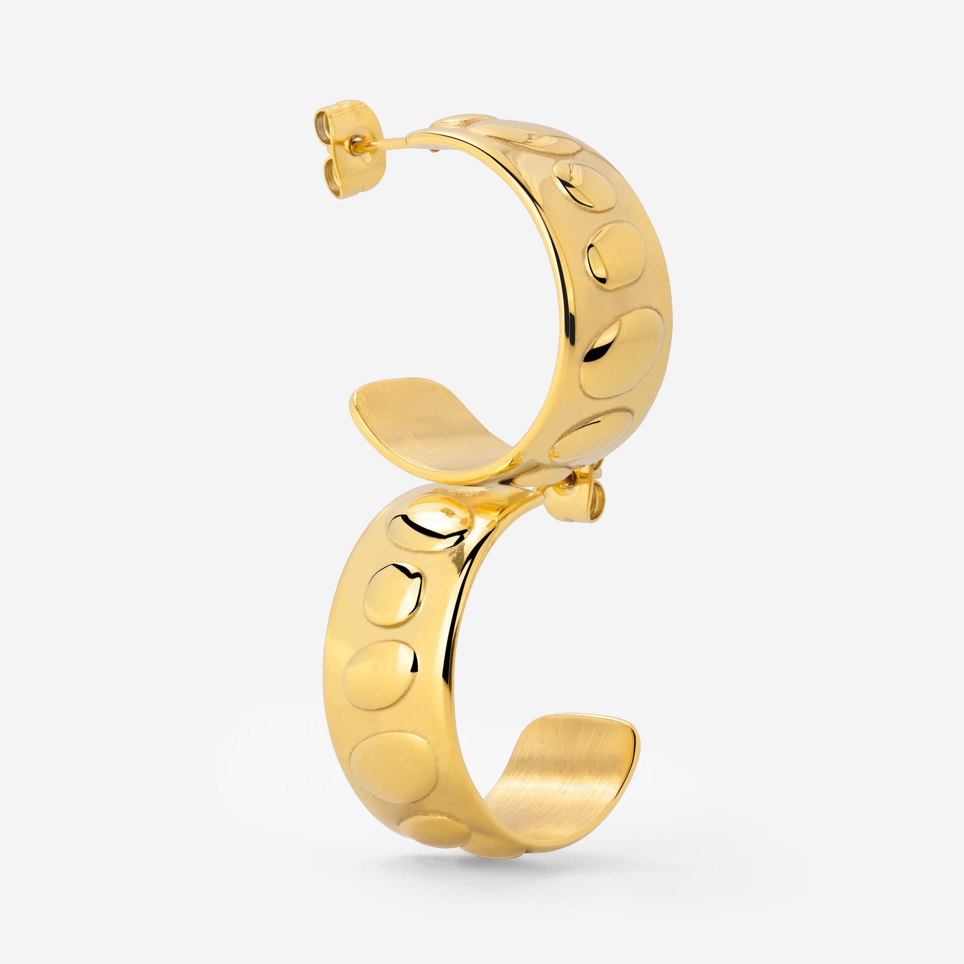 Mit unseren “Boho Beads” Hoop Studs vereinen wir sommerliche Eleganz mit außergewöhnlichem Design und bringen wir das perfekte Piece, mit dem du auf deiner nächsten Beach Party garantiert alle Blicke auf dich ziehen wirst. Die sanft gewölbten, wasserperlen-artigen Details machen die breiteren Hoop Studs zu einem echten Eye-Catcher und sind perfekt für alle, die mit ihrem Schmuck ein Statement setzen wollen – be bold, be you!