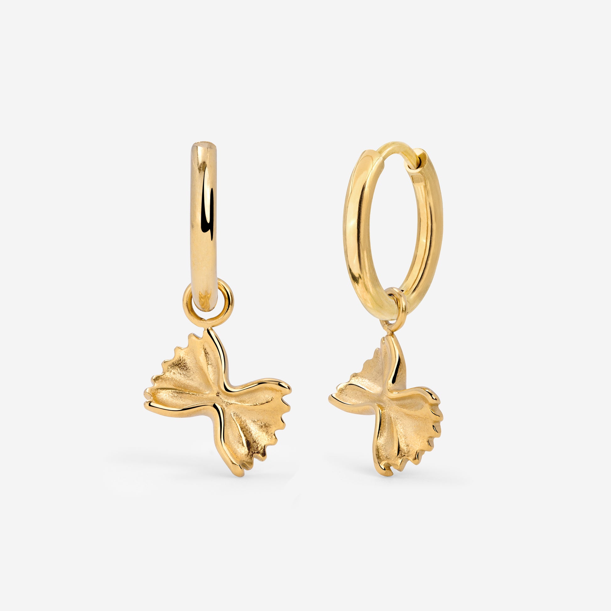 Farfalle, Spaghetti, Penne – du hast Pasta nicht nur auf deinem Teller, sondern auch im Herzen! Unser “Farfallissimo” Hoop Set ist der perfekte Begleiter für jeden Pasta Lover. Ob für deinen nächsten Italien Urlaub oder einfach für einen Mood Booster im Alltag, die süßen Charms in Farfalle Form werden dir bei jedem Tragen sofort ein Lächeln ins Gesicht zaubern. Die basic Hoops lenken dabei nicht vom Highlight ab, sondern lassen die kleinen Pasta-Anhänger voll und ganz strahlen! Kreiere deinen eigenen Italian Charme Look ganz nach deinen Vorlieben!