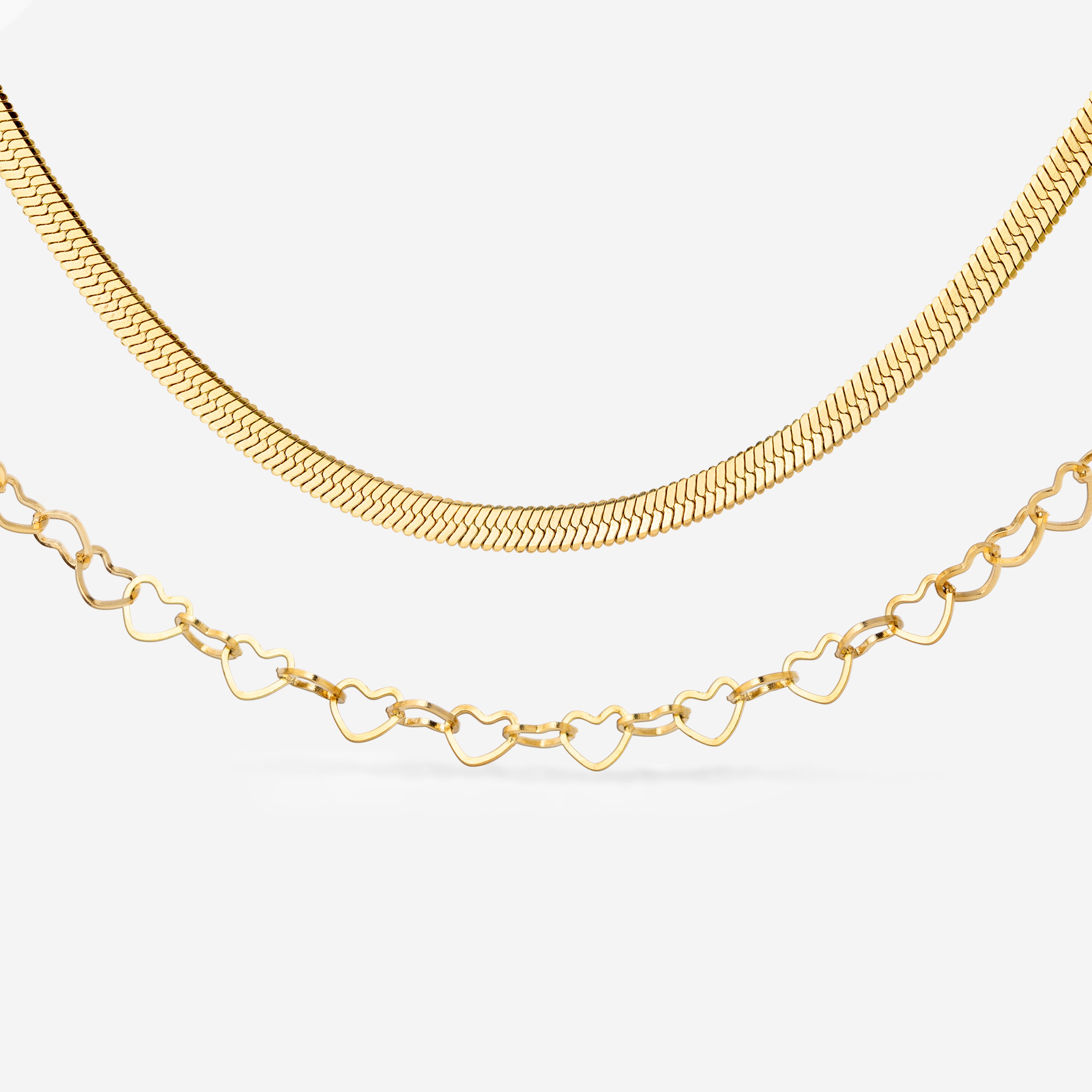 Kettenlayering muss nicht kompliziert oder auffällig sein und mit unserem “Just Love” Bundle bekommst du deinen Look ready to go. Sowohl unsere “Heart after Heart” Necklace, die aus kleinen Herzchen besteht, als auch unsere “Slim Herringbone” Necklace mit ihrem klassischen Fischgräten Design ist dezent und zeitlos. Zusammen getragen unterstreichen und komplementieren sich die beiden Halsketten gegenseitig und kreieren einen eleganten, aber dennoch interessant anzusehenden Look für jeden Tag und jeden Anlass.