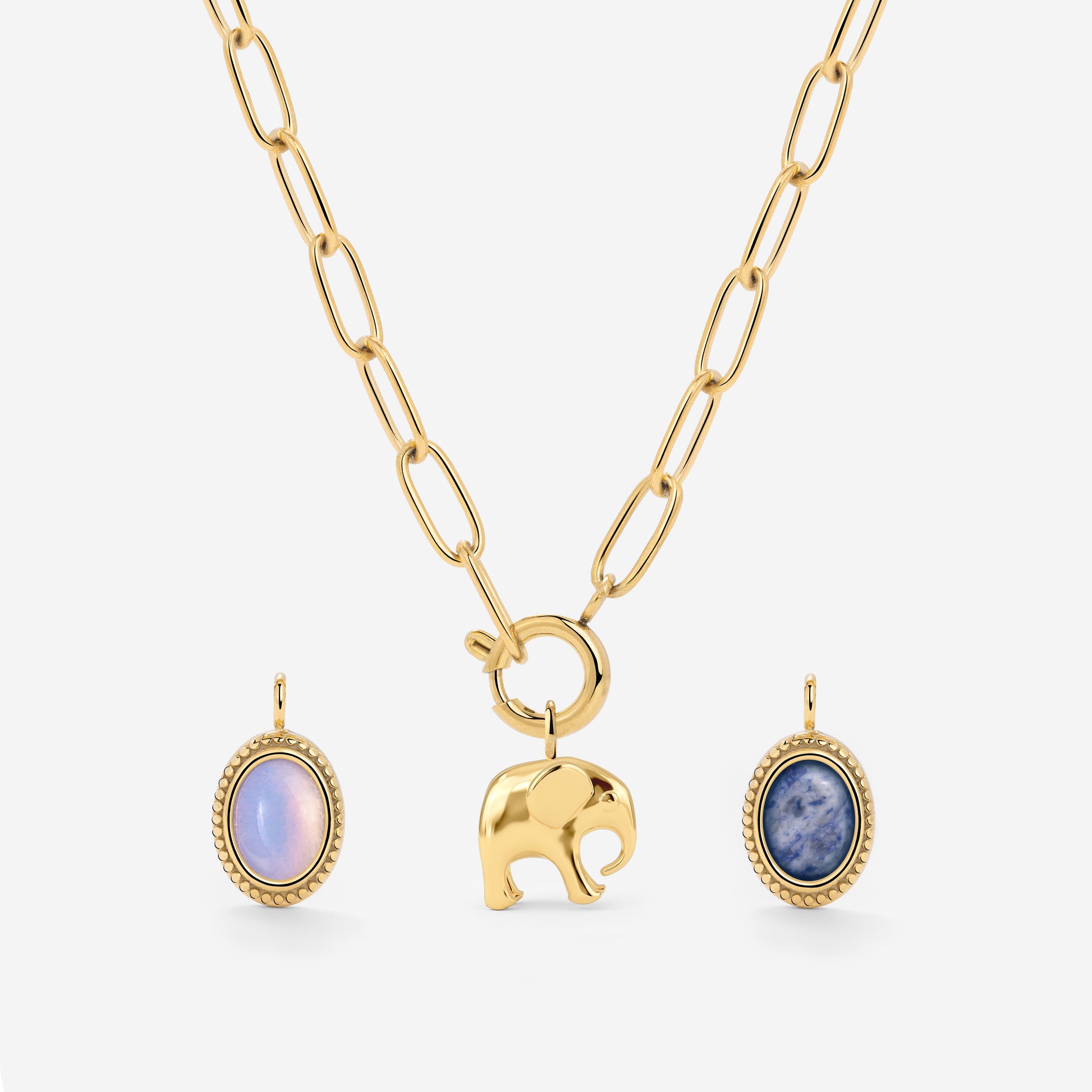 Du liebst es, deinen Stil jeden Tag zu ändern und immer wieder was Neues auszuprobieren? Dann wirst du unser “Oval Links” Charm Necklace Set lieben! Die klassische, aber etwas auffälligere Paperlink Chain mit ihren länglichen Kettengliedern ist gleichzeitig bold und zeitlos, und passt daher perfekt zu jedem der Necklace Charms. Mix & Match nach Herzenslust und kreiere deinen ganz individuellen Look, ob elegant mit einem Edelstein oder wild und ausgefallen mit einer Zitrone oder einer Erdbeere – deiner Kreativität sind keine Grenzen gesetzt!