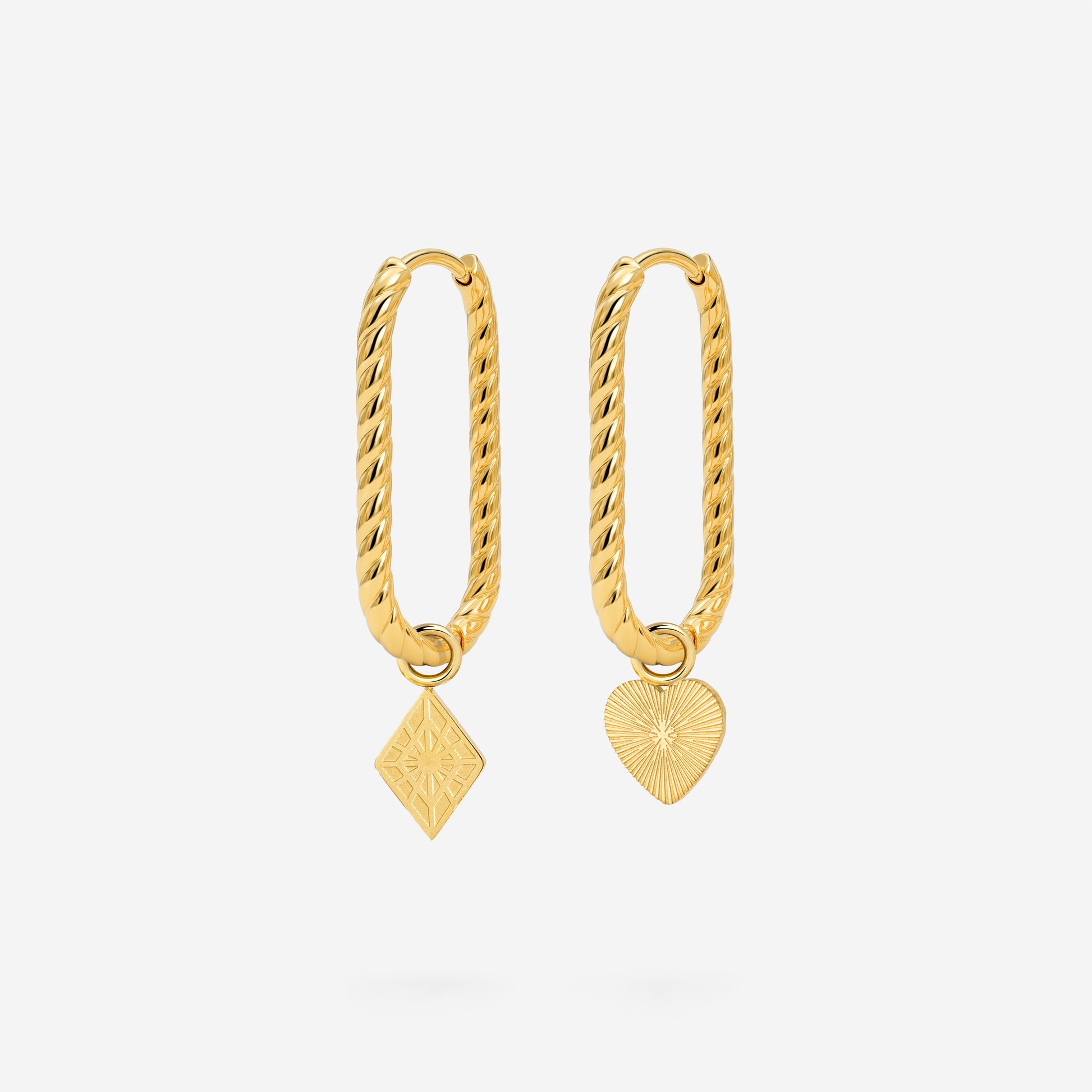 Unsere Twisted Hoops gibt es jetzt auch in der angesagten Oval Variante. In der Größe Small werden sie zu einem kleinen Statement Piece an deinem Ohr. Easy zu kombinieren aber far from boring sind sie die perfekte Ergänzung in deinem Schmuckkästchen. Individualisiere deinen Look außerdem mit den Charms deiner Wahl!