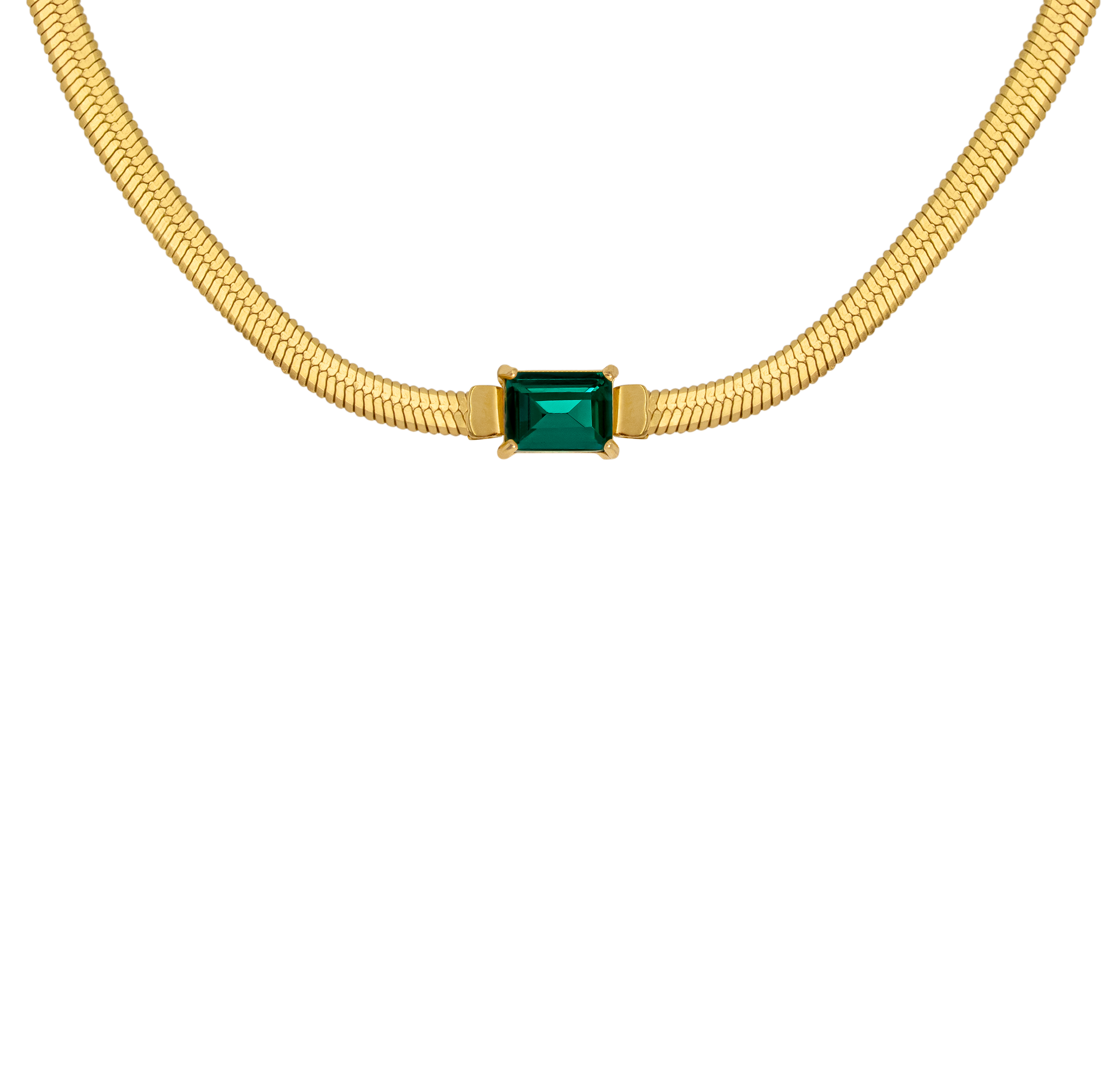 Unsere Radiant Emerald Necklace bildet ein ganz besonderes Piece unserer Kollektion. In edlem Look ist sie perfekt geeignet für schickere Anlässe oder um einen farblichen Akzent in deinem Layering zu setzen. Die Farbe Grün steht dabei für Hoffnung und Treue und wird außerdem mit Entspannung und Harmonie assoziiert, was sie zu einer beliebten Farbe für Schmuckstücke macht.