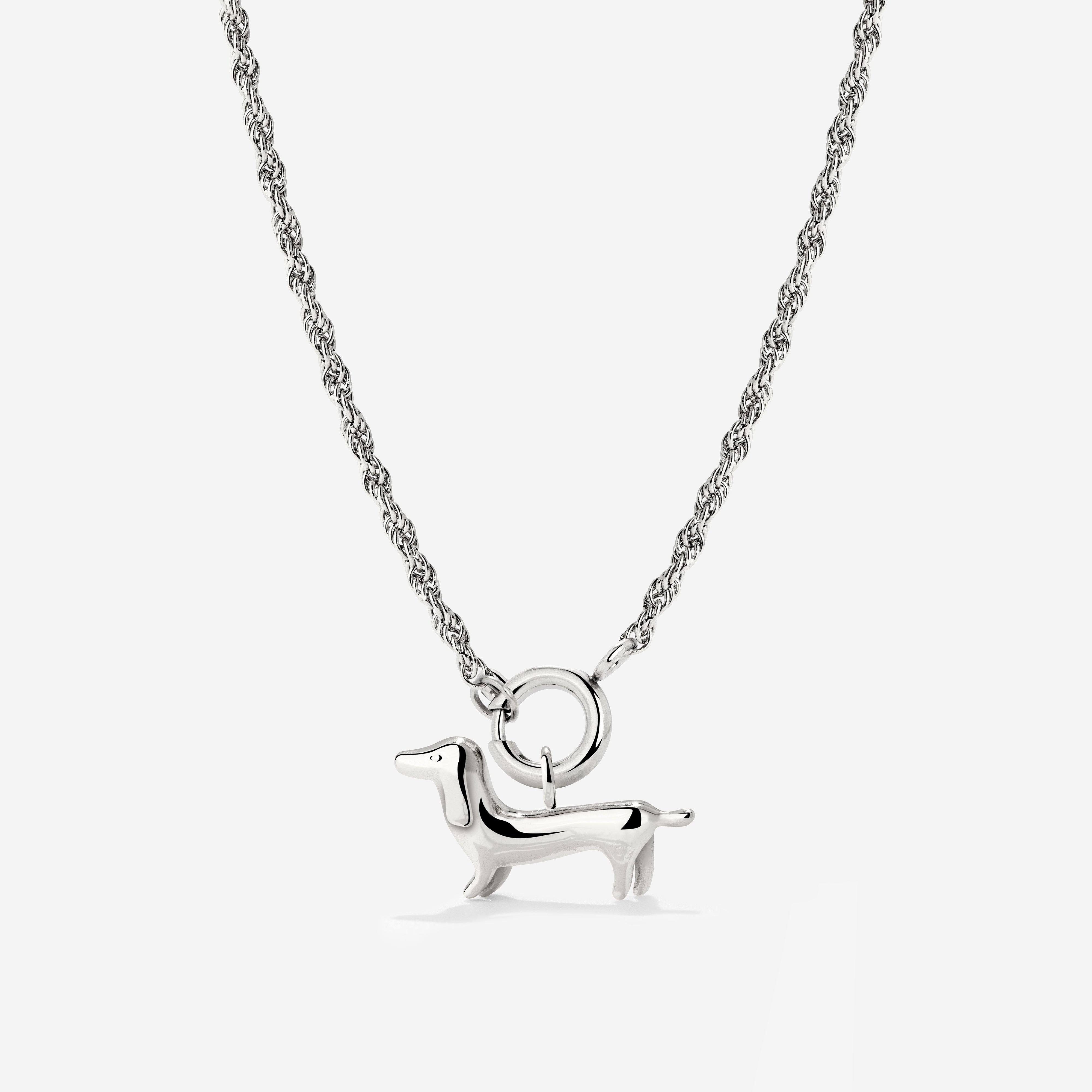 Kurze Beinchen, langer Körper und ganz viel Liebe, das steckt in jedem Dackel. Wir wollten diese Liebe für unsere Vierbeiner einfangen, damit du sie immer bei dir tragen kannst und so entstand unser “Shorty” Rope Chain Necklace Set! Der niedliche Dackel-Charm passt perfekt zur verspielten Rope Chain und sowohl beim Tragen als auch beim Anschauen kann man gar nicht anders, als direkt gute Laune zu bekommen und zu lächeln. Verpass deinem Outfit einen süßen Twist und schnapp dir dieses Schmuckstück!
