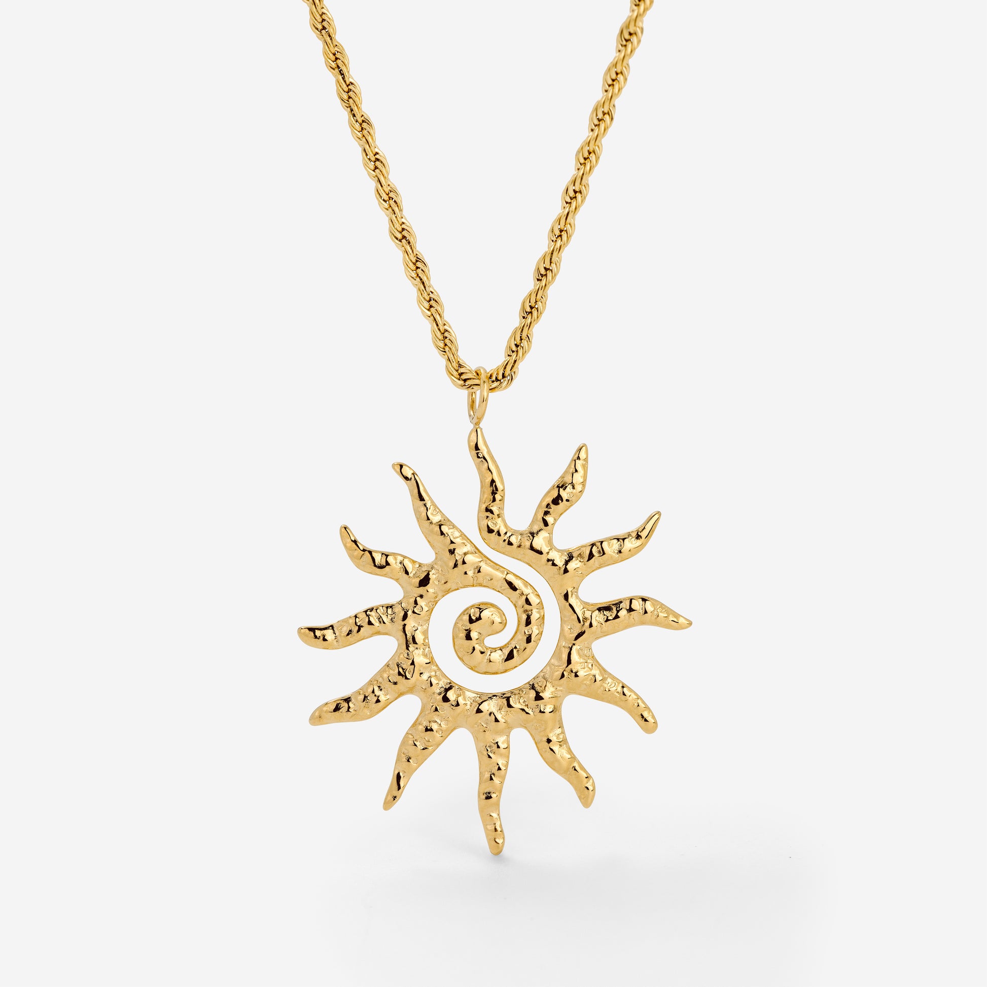 Sonnenmotive gehören immer zu unseren All Time Bestsellern und dürfen vor allem im Sommer nicht fehlen. Unsere “Soleil” Necklace ist die perfekte Ergänzung zu diesem Trend, sticht jedoch gleichzeitig durch den großen, auffälligen Sonnenanhänger raus und wird dadurch zu einem funkelnden Eyecatcher. Kombiniert mit einer dazu passenden Rope Chain wird dieses Schmuckstück jeden einzelnen Sonnenstrahl einfangen, reflektieren, und dich dabei strahlen lassen wie die Sonne selbst! Wenn du gerne matching Pieces magst, probier es auch mit unseren “Soleil” Studs und stell deinen Summer Look zusammen!