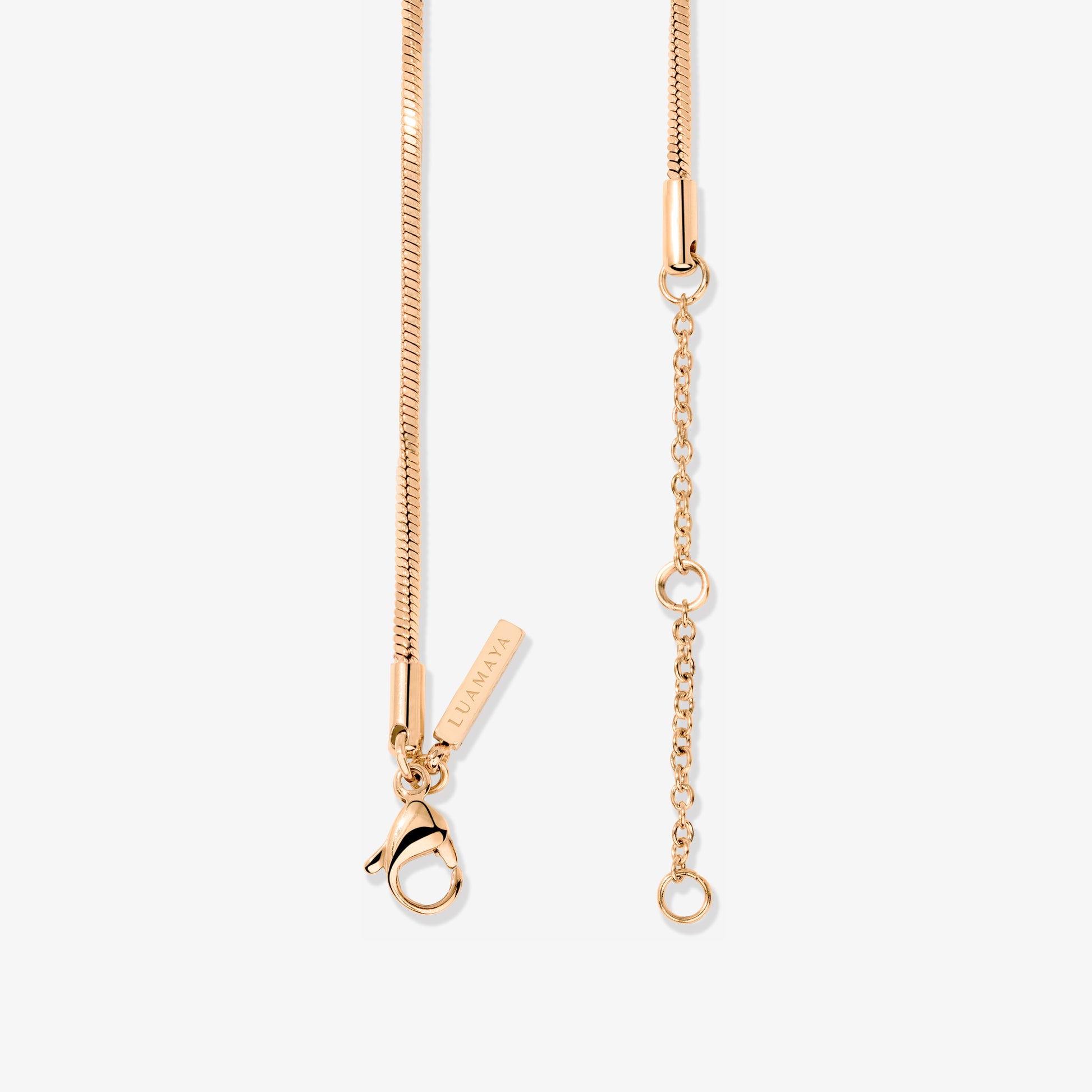 Es gibt viele Kettenarten, die immer wieder in Designs auftauchen, aber unsere “Squared Snake Chain” Necklace ist definitiv einzigartig und auch in unserer Kollektion was ganz Neues. Anstatt der üblichen runden Snake Chain haben wir uns hierbei für eine eckige Variante entschieden, was zu einem leicht gedrehten Effekt führt, der Lichtstrahlen auf raffinierte Art und Weise einfängt und reflektiert. Durch ihr dezentes Design eignet sich diese Halskette ideal als Basis zum layern, kann aber auch easy allein getragen werden, wenn du einen minimalistischen Look bevorzugst!