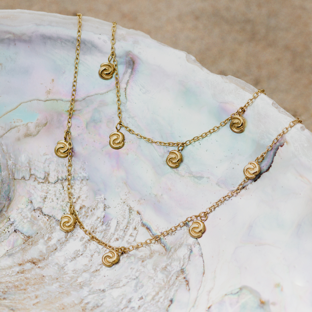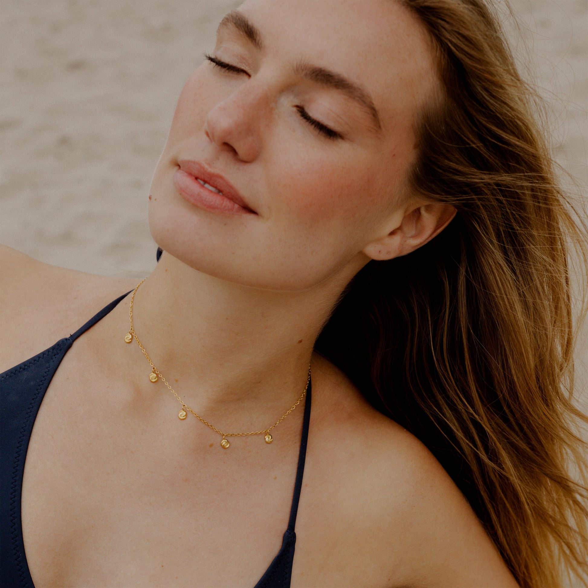 Clean Girl Summer ruft nach dir und du brauchst etwas Dezentes, Minimalistisches, aber dennoch Verspieltes? Unser “Tides of Time” Choker erfüllt so ziemlich jeden deiner Style-Wünsche und noch viel mehr. Die basic O-Chain wird mit kleinen, kurvenförmigen Anhängern verziert und gibt dem Schmuckstück einen Touch an Leichtigkeit, der perfekt zum Sommer und darüber hinaus passt. Durch das schlichte Design eignet sich dieser Choker auch perfekt zum layern und kann als Basis für unendlich viele Kombinationen dienen, zum Beispiel mit einer oder mehrerer unserer Halsketten mit Anhängern!