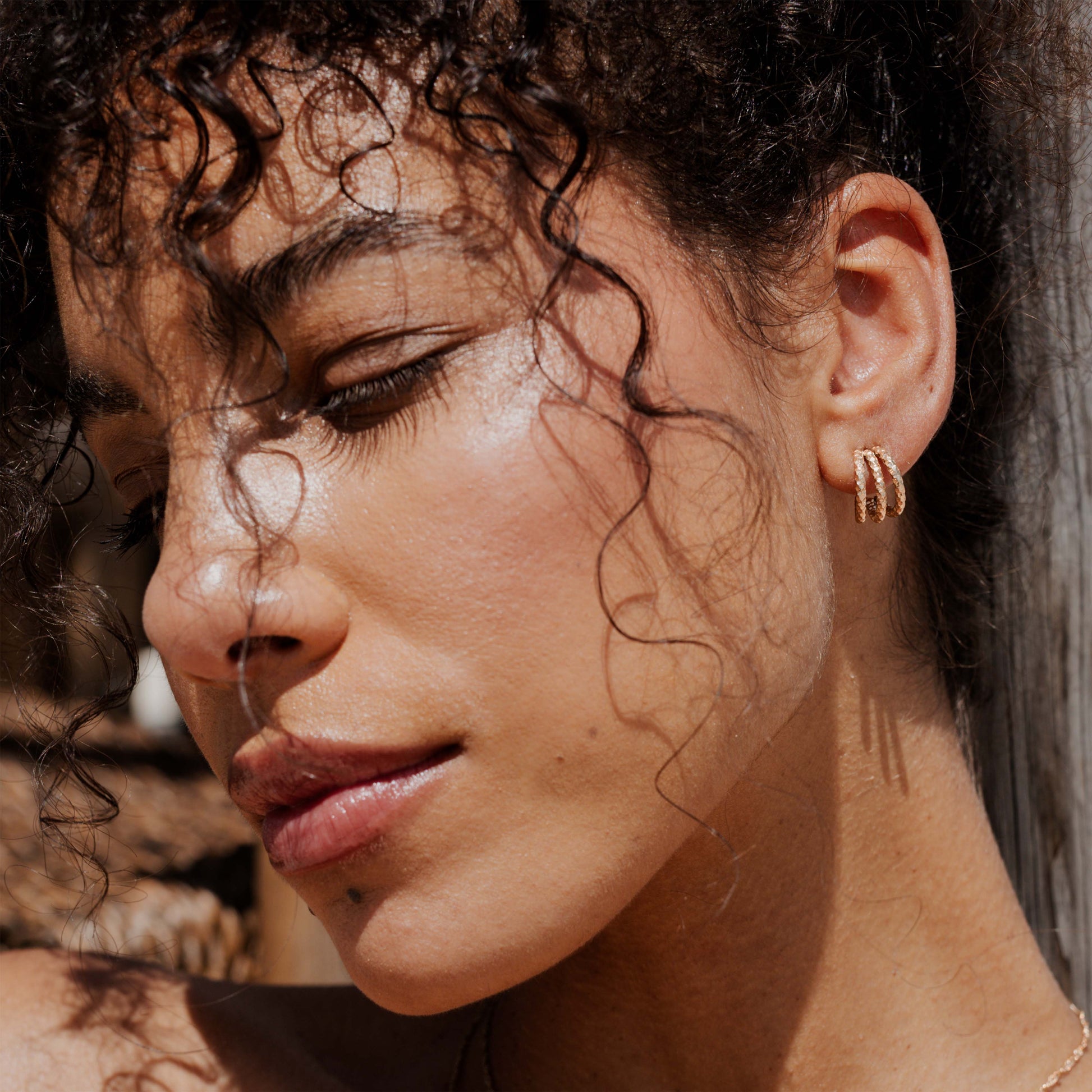 Wieso nur eine Creole, wenn du auch drei in einer haben kannst? Mehr ist mehr ist ganz nach deinem Motto? Dann schnapp dir unsere Triple Trouble Studs! Mit der dreier Komposition in einer regelmäßigen runden Form, der verspielten Oberfläche und dem puristischen Design, setzt du mit diesem Piece ein subtiles Highlight.
