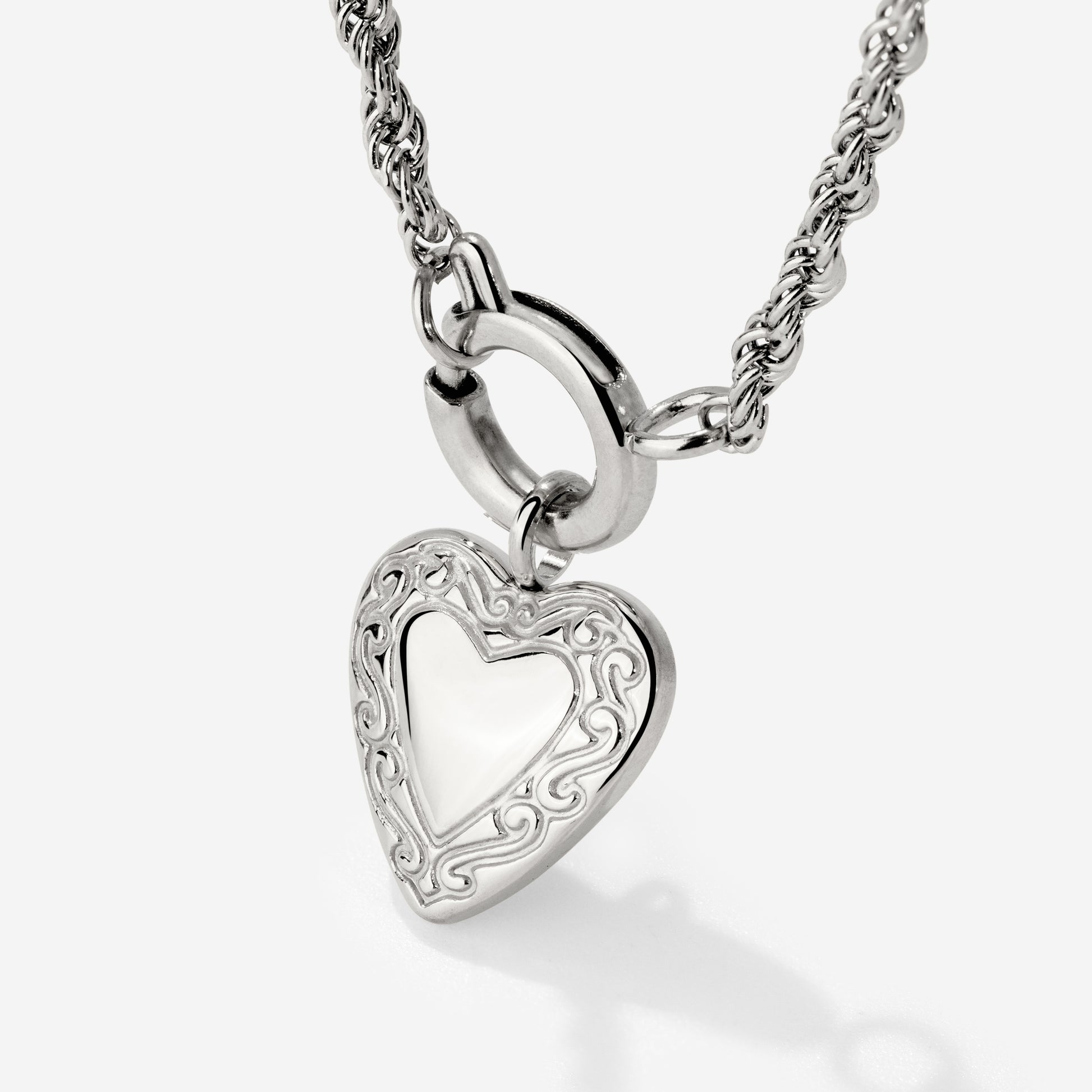 Du magst vintage Designs und feine, detaillierte Akzente bei deinem Schmuck? Dann wirst du unser “Vintage Heart” Rope Chain Necklace Set lieben! Die getwistete Kette komplementiert den kleinen, süßen Herz-Charm perfekt und unterstreicht den antiken Vibe, den das Schmuckstück ausstrahlt. Der Charm selbst wird durch feine, verschnörkelte Gravuren verziert, wodurch die Halskette erst recht so wirkt, als käme sie direkt aus dem Schmuckkästchen deiner Oma. Lass dir diesen Schatz auf keinen Fall entgehen und schnapp zu!