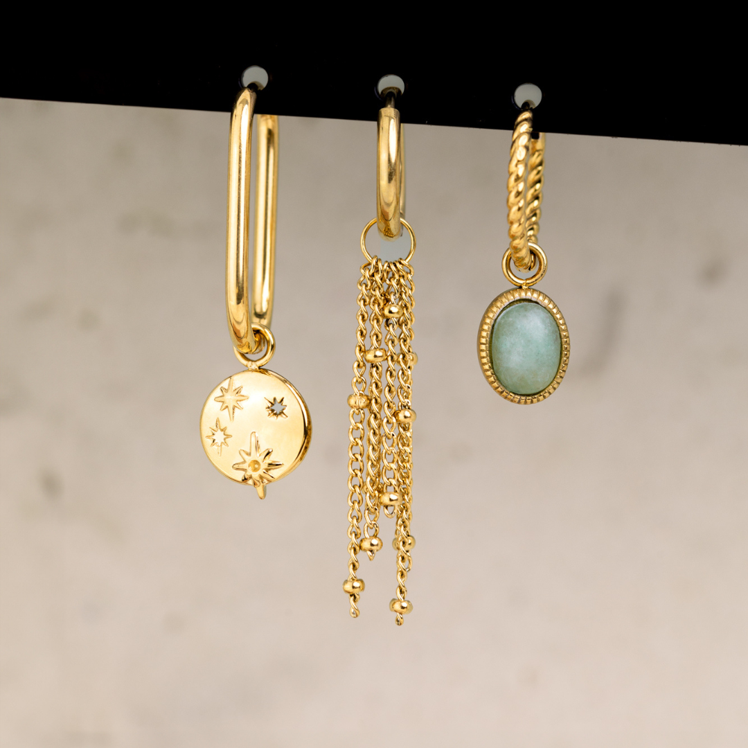 Unser “Vintage Tones” Twisted Hoop Set Small ist genau das Richtige für alle unter euch, die den gewissen Vintage Kick brauchen und vielleicht auch mal gerne in Omas Schmuckkästchen gestöbert haben. Der blass-grüne Jadestein passt perfekt zu dem gedrehten Design unserer Twisted Hoops und macht diese Kombination zu einem besonders edlen Look, den du dir auf keinen Fall entgehen lassen solltest. Zöger nicht lange, go and get it!