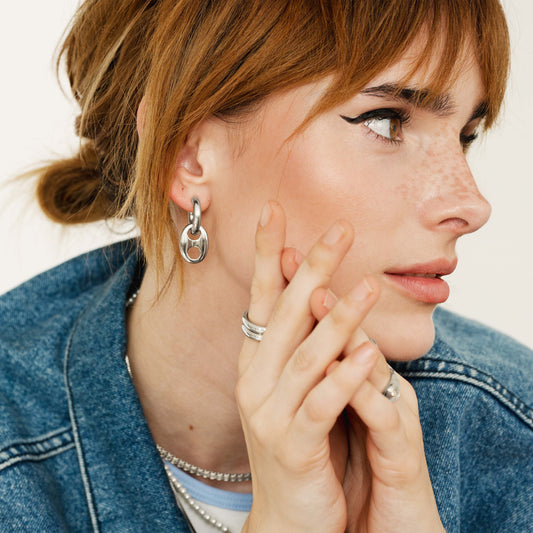 Good Luck Coin Oval Twisted Hoop Set Baby Silber