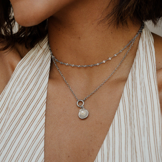 Pearly Shell Classic Chain Necklace Set Silber