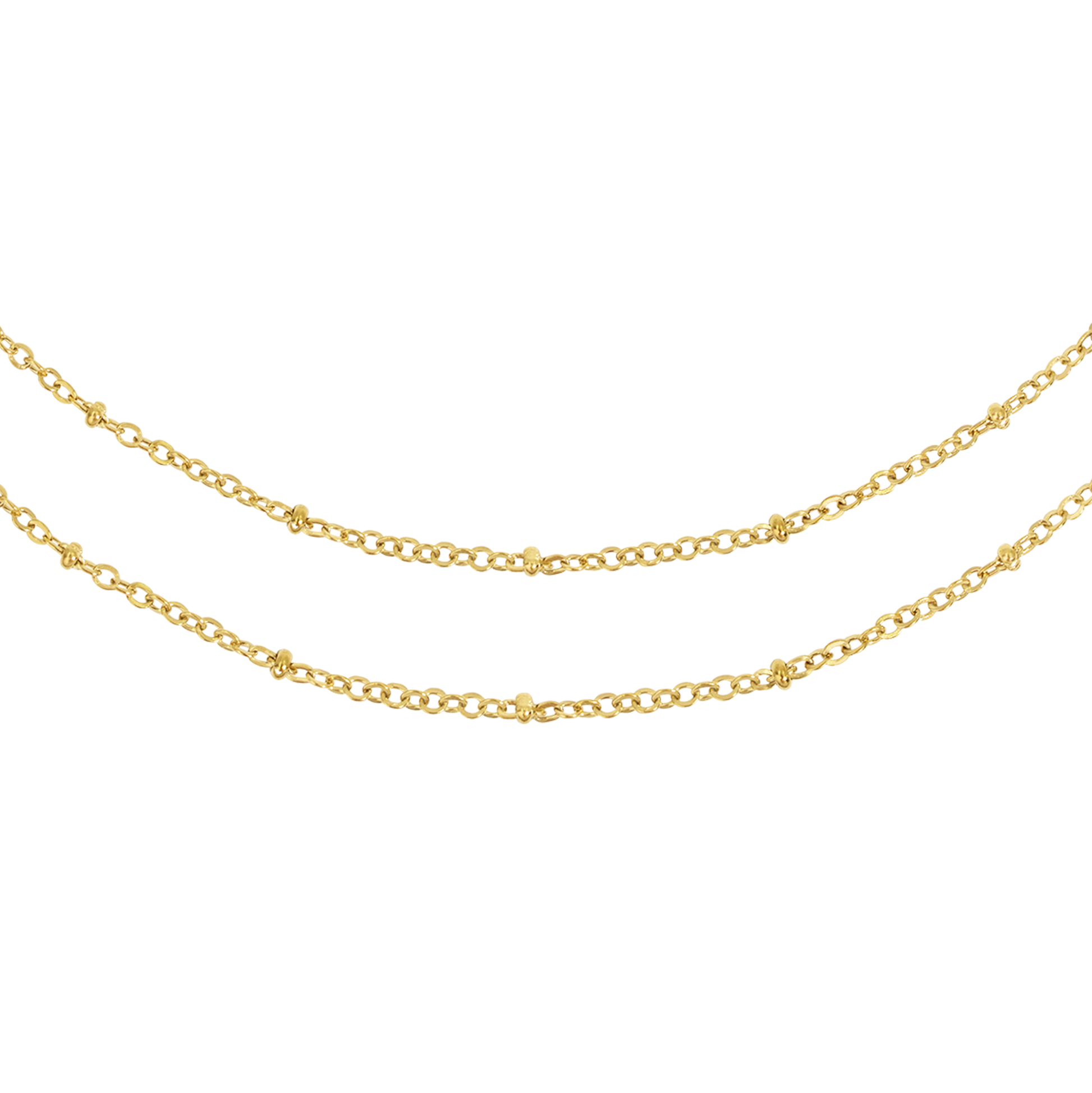 Die Alimera ist mit ihrem schlichten zweireihigen Look ein cutes Highlight. Nicht nur einzeln getragen, sondern auch mit anderen Luamaya Ketten kombiniert ist sie ein ganz besonderes It-Piece.