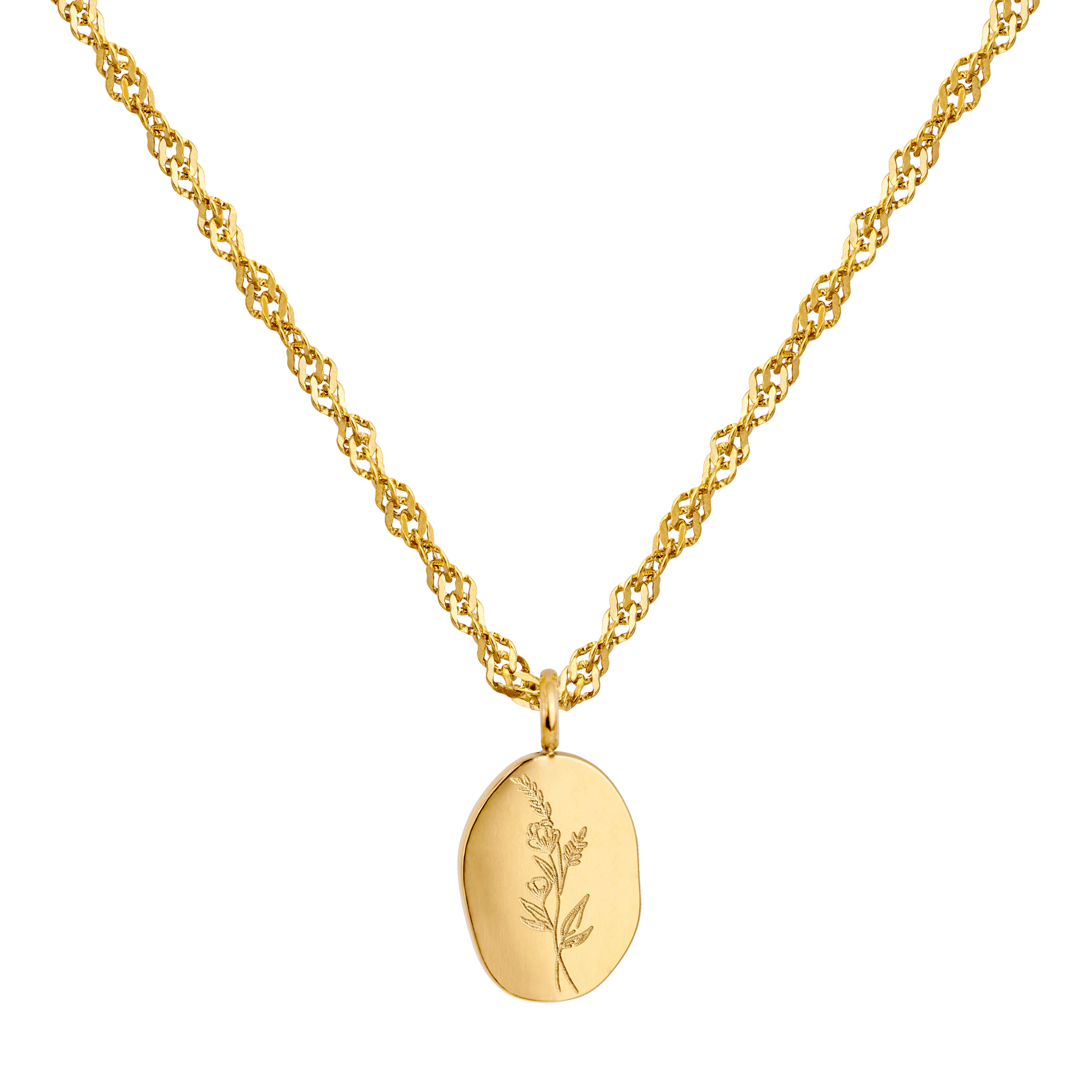 Was gibt es im Sommer Schöneres, als einen duftenden Strauß frische Blumen zu genießen, den man vielleicht sogar noch selbst gepflückt hat? Richtig - es zusammen mit unserer “Bouquet CoinNecklace zu tun! Der ovale Anhänger, verziert mit feingravierten Wildblumen, schmückt jeden deiner Summer Looks mit einer ganz besonders frischen Note, und sieht sowohl allein als auch als Layerpiece in Kombination mit anderen Ketten wunderschön aus. Zöger nicht lange und probier's gleich aus!