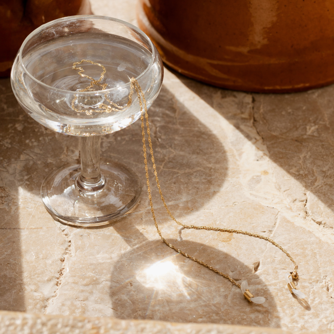 Sun’s up, glasses out! Wenn die Sonne endlich wieder scheint, darf die Sonnenbrille nicht fehlen. Und was könnte das Summer Staple noch besser machen? Unsere “Curly Twist” Sunglasses Chain natürlich! Die filigran gedrehte Kette ist ein absoluter Hingucker und peppt jede Sonnenbrille ordentlich auf. Ob auf dem Kopf oder um den Hals, diese Sunglasses Chain wird dein neuer Sommer-Liebling!