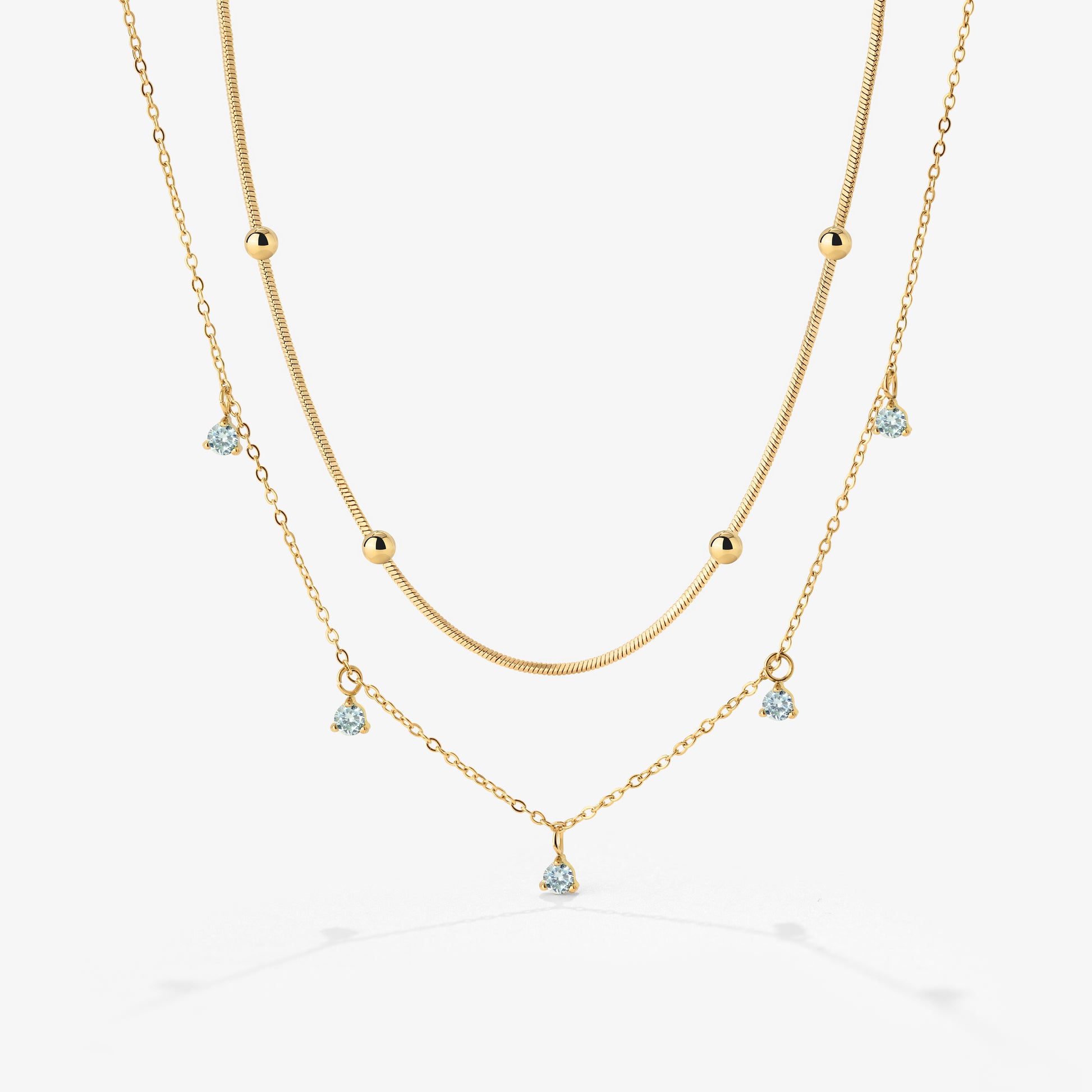 Manchmal möchtest du nicht lange darüber nachdenken, welche Ketten du miteinander kombinieren und layern kannst, sondern brauchst einfach ein gutes Staple was immer funktioniert. Unser “Dreamy” Bundle ist genau das! Die Kombination aus unseren Dreamy” und “MoonyNecklaces ist die perfekte Mischung aus dezent und einzigartig. Während unsere “MoonyNecklace mit ihren kleinen Beads minimalistisch wirkt, bringt die “DreamyNecklace mit ihren blassblauen Zirkoniasteinen Farbe und Funkeln in den Look. Lass dir von diesem Set jedes Mal ein Lächeln ins Gesicht zaubern, wenn du es trägst!