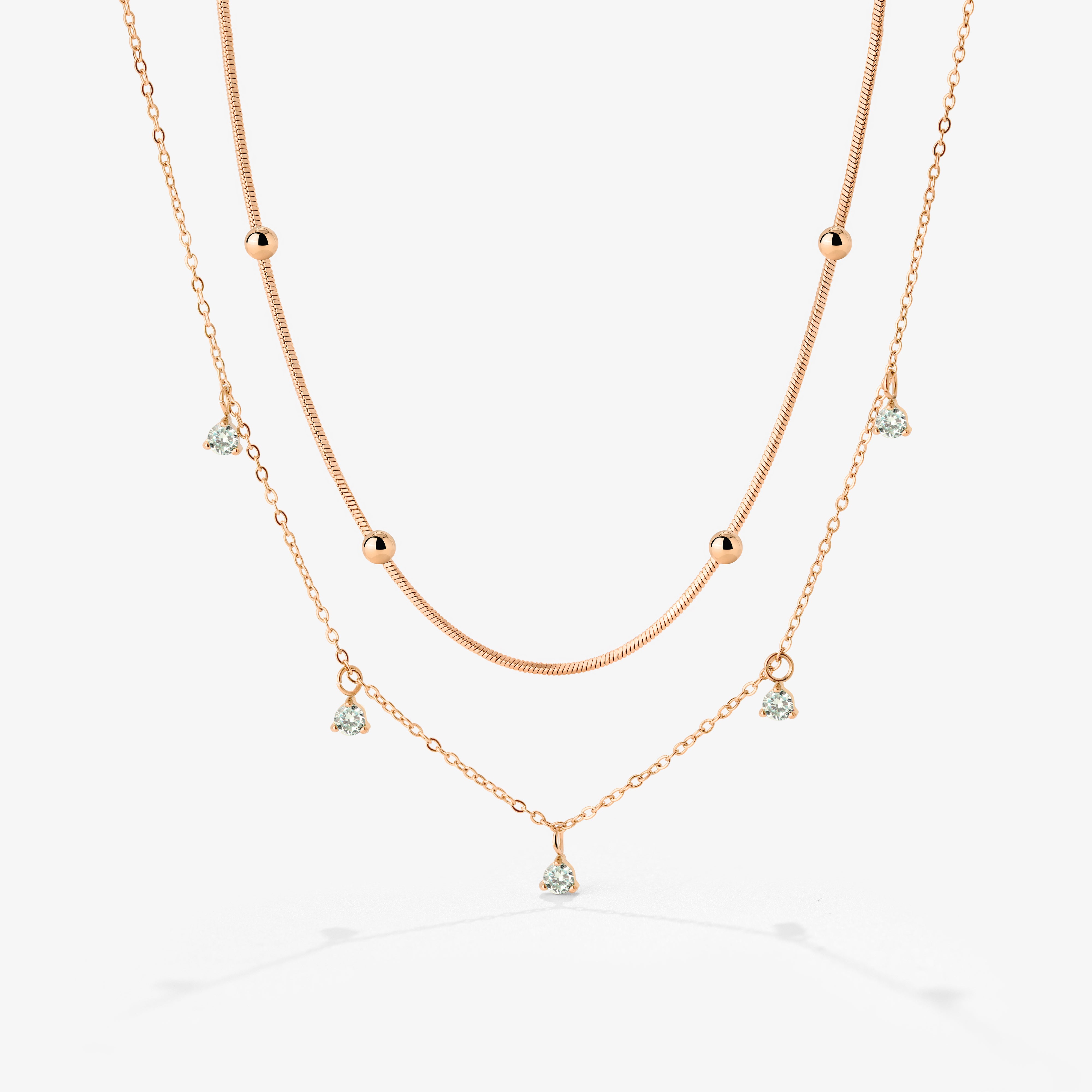 Manchmal möchtest du nicht lange darüber nachdenken, welche Ketten du miteinander kombinieren und layern kannst, sondern brauchst einfach ein gutes Staple was immer funktioniert. Unser “Dreamy” Bundle ist genau das! Die Kombination aus unseren “Dreamy” und “Moony” Necklaces ist die perfekte Mischung aus dezent und einzigartig. Während unsere “Moony” Necklace mit ihren kleinen Beads minimalistisch wirkt, bringt die “Dreamy” Necklace mit ihren blassblauen Zirkoniasteinen Farbe und Funkeln in den Look. Lass dir von diesem Set jedes Mal ein Lächeln ins Gesicht zaubern, wenn du es trägst!