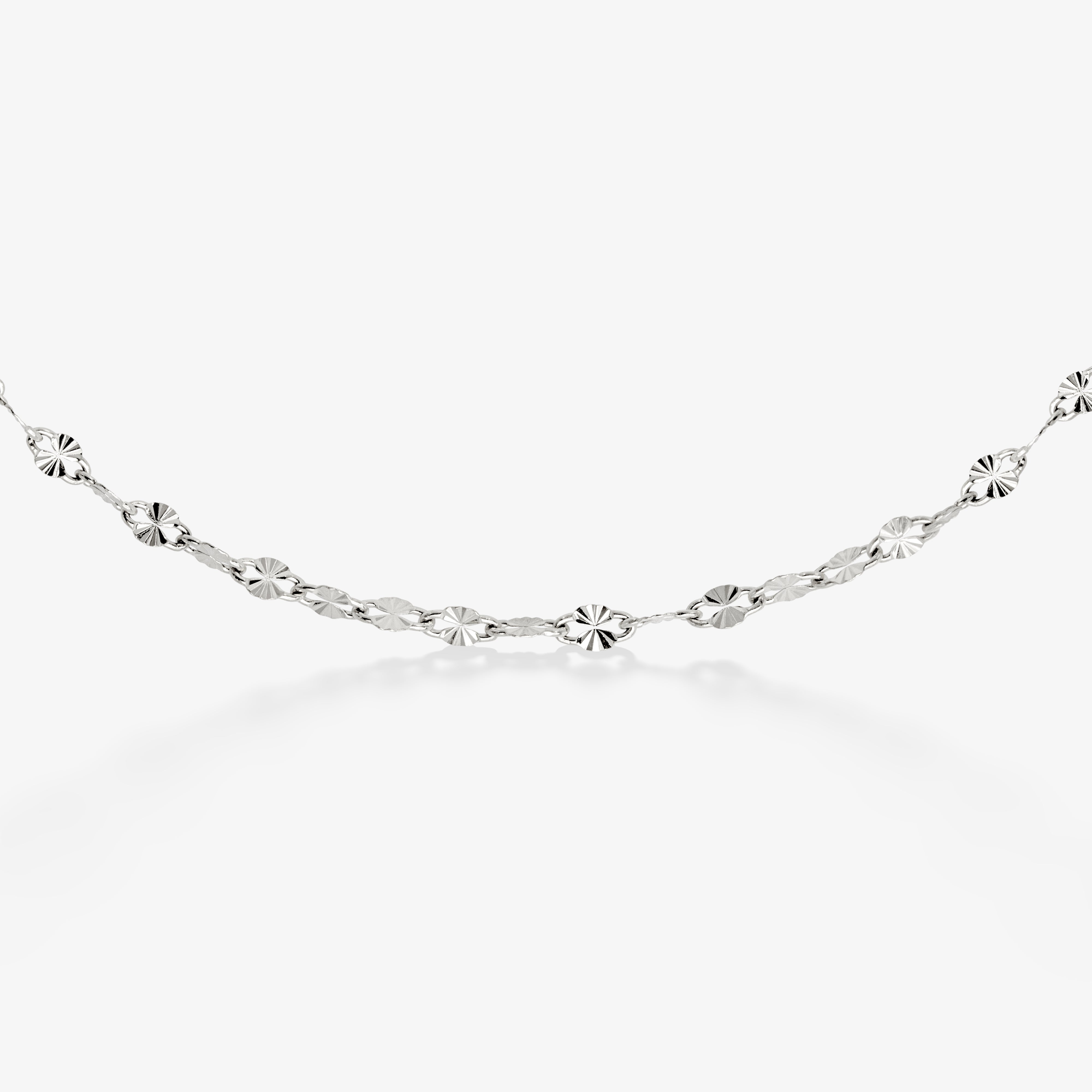 Lolas „Emelies Best Friends Choker“ besteht aus fein aneinander gereihten ovalen Plättchen mit filigran eingravierten Strahlen. Durch die Höhen und Tiefen entstehen schöne Lichtreflexe, die diese Kette zu einem kleinen Hingucker an deinem Hals machen. Dieser Choker eignet sich außerdem ideal als Basis für dein Layering und lässt sich wunderbar mit den anderen Ketten der Kollektion kombinieren.
