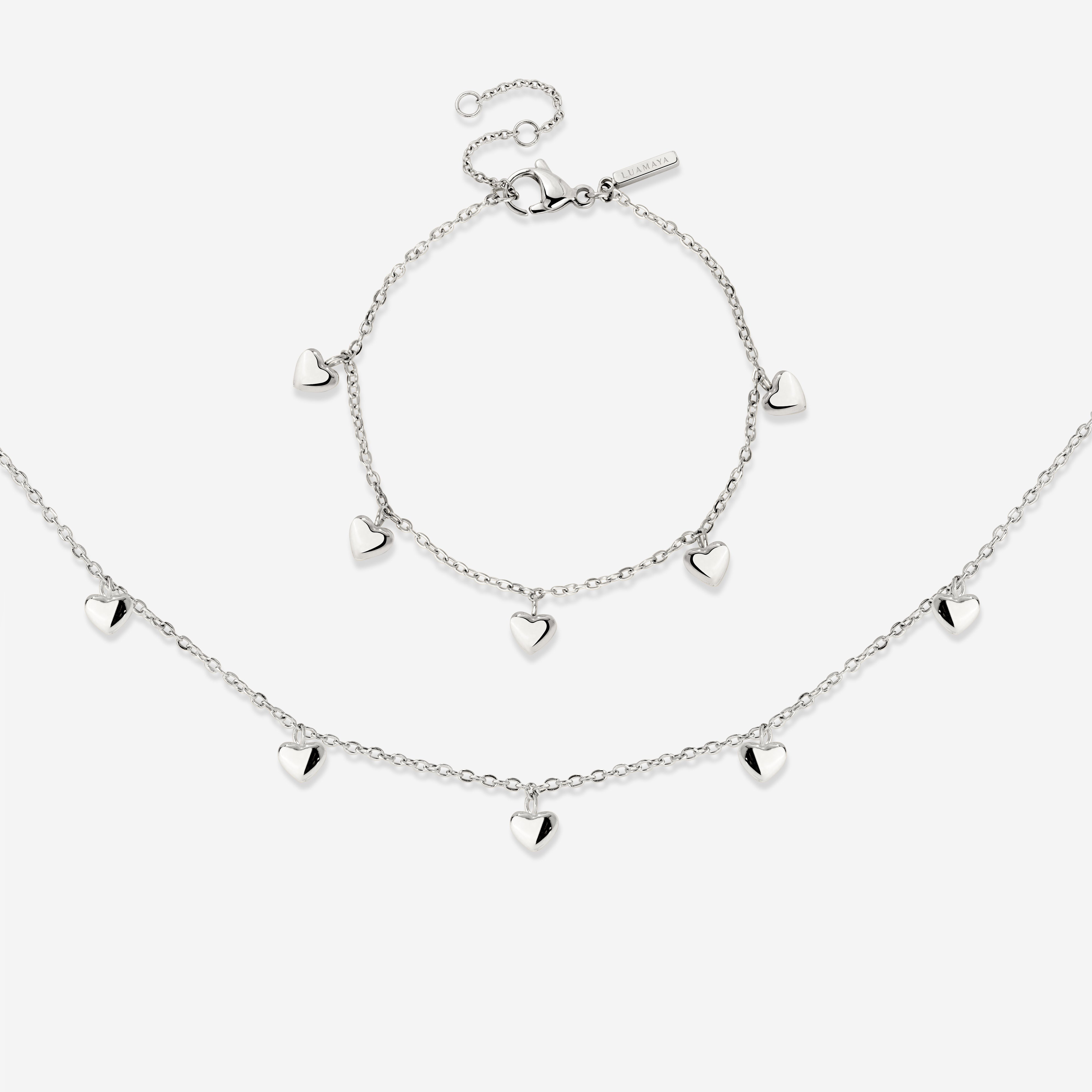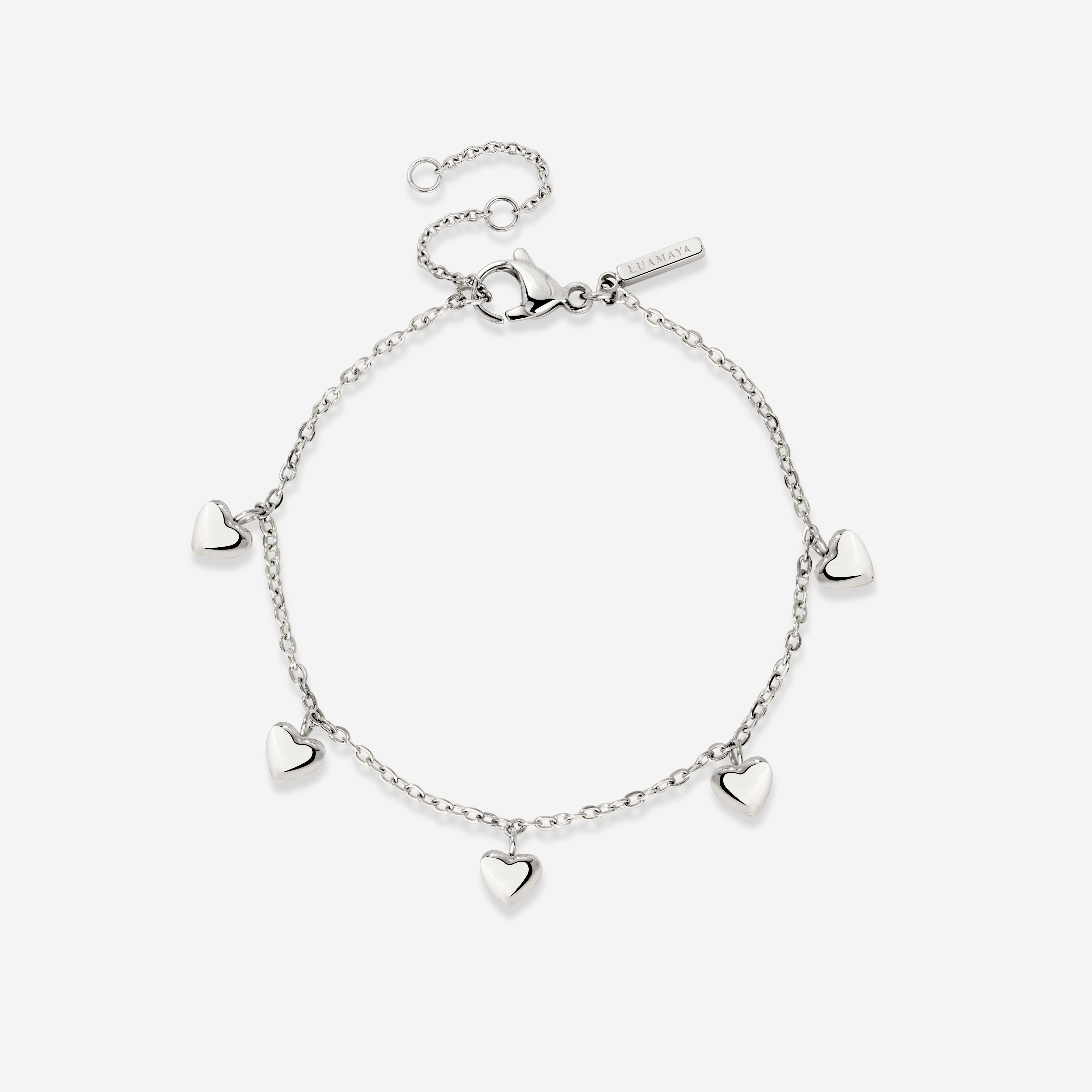 Während es draußen immer kälter und dunkler wird, schenkt dir unser “Lovely Heart” Bracelet warme Liebe und gute Laune! Die filigrane Chain mit ihren fünf kleinen Herzchenanhängern ist genau das Richtige, um den Winter mit positiven Vibes zu begrüßen und ihn auch zu genießen. Jedes Mal, wenn du dieses Armband trägst, wirst du gar nicht anders können als zu lächeln und am nächsten Tag direkt wieder danach zu greifen. Trage das Bracelet allein für einen niedlichen, aber minimalistischen Look, oder kombiniere ihn mit unseren anderen Herz-Pieces für einen verspielten Touch.