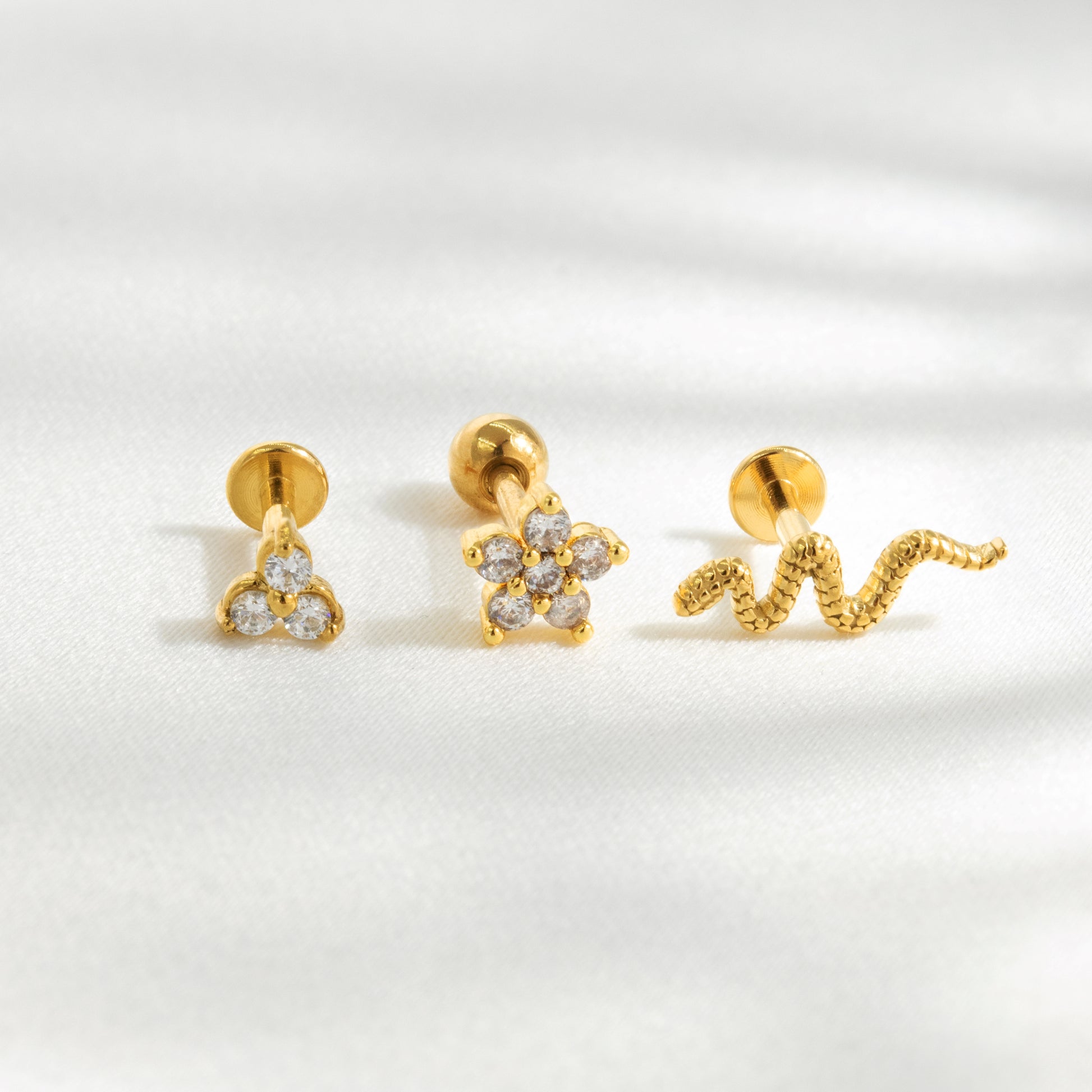 Neben unseren Hoop Piercings sind dieses mal auch Studs mit von der Partie. Unser Snake Piercing schlängelt sich elegant an deinem Ohr entlang und ist in absolutes Upgrade für dein Piercing Game. Er besteht aus Chirurgenstahl 316L und ist daher besonders hautverträglich.