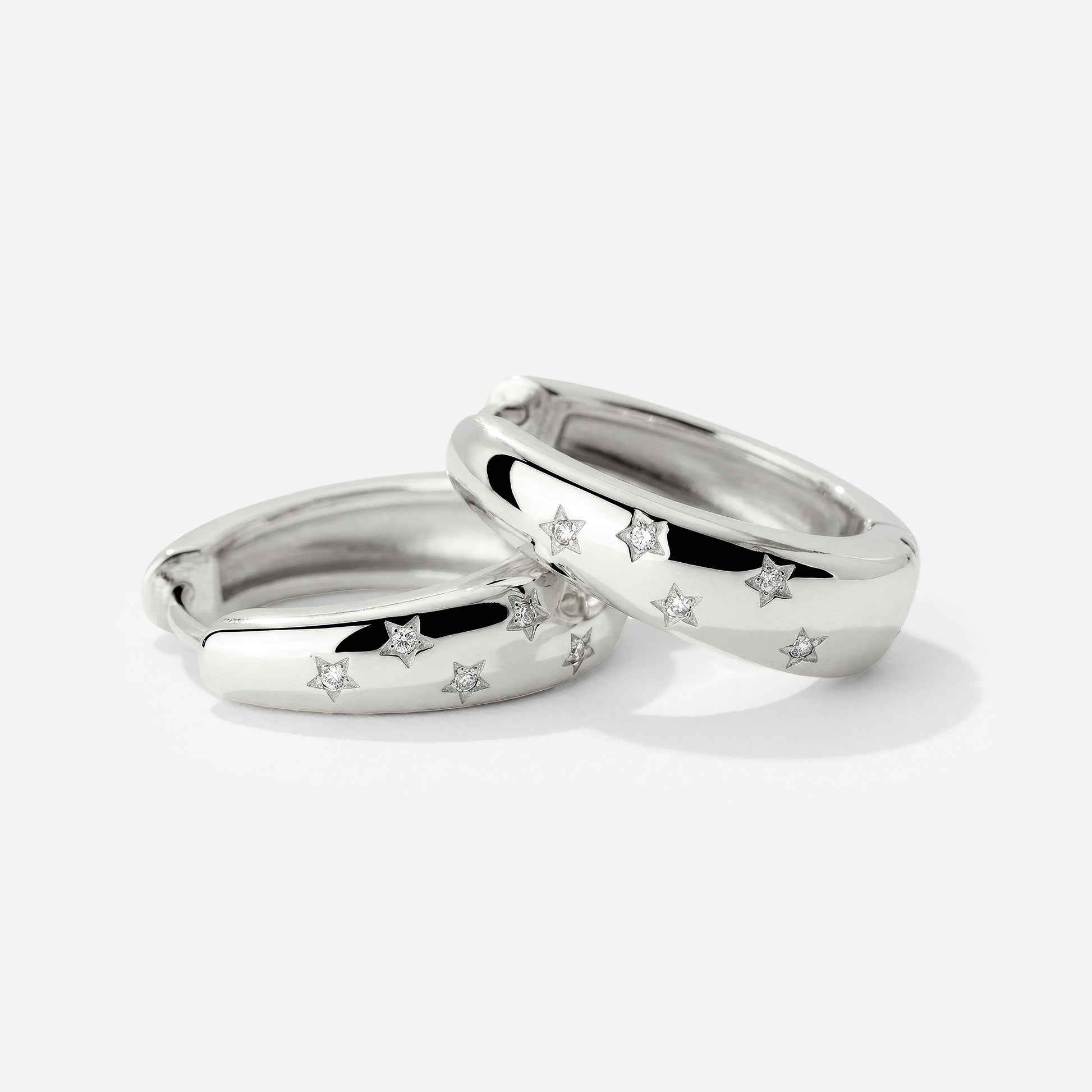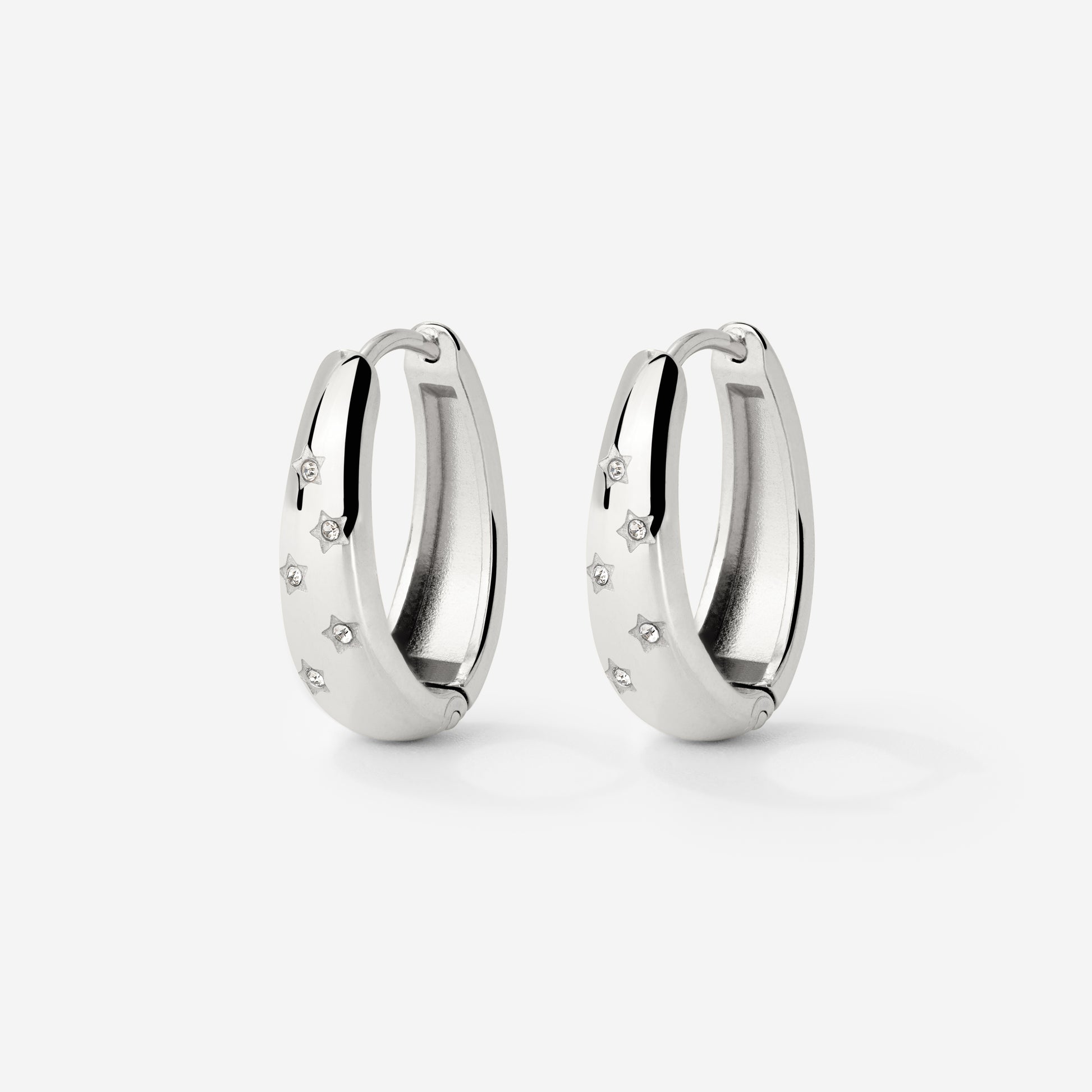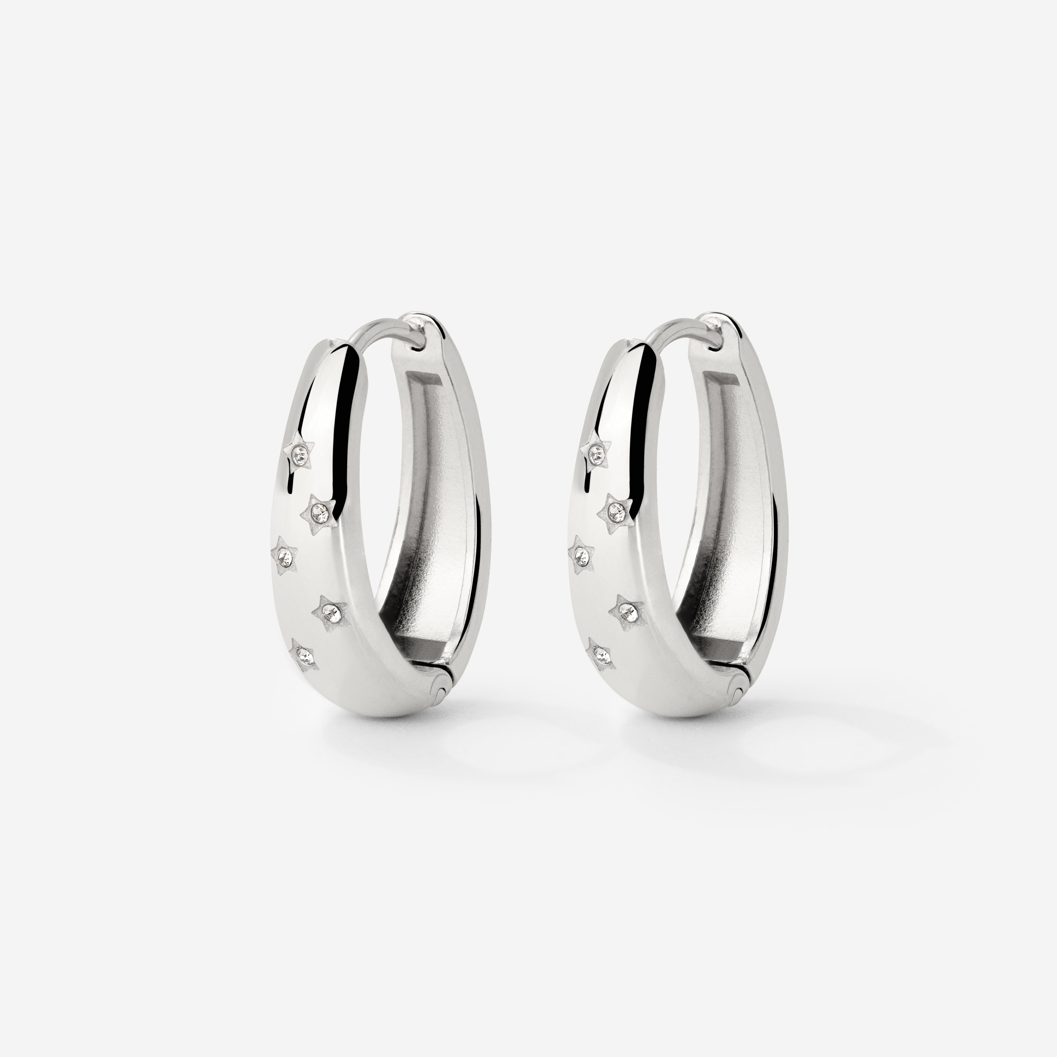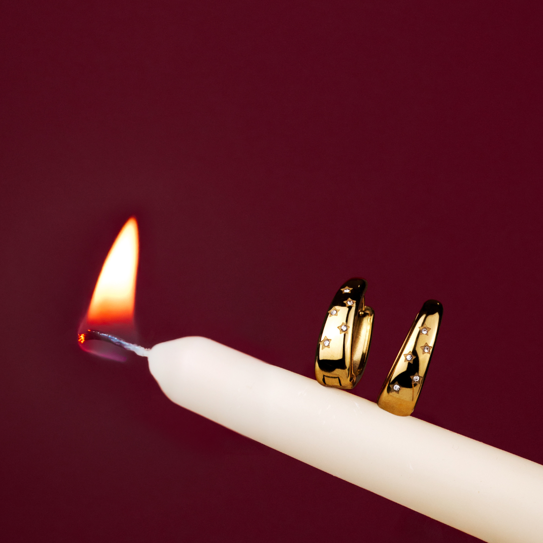 Du möchtest so strahlen wie der Sternenhimmel? Dann brauchst du unsere “Starstruck” Hoops! Die glatten Hoops werden nach unten hin breiter, was das Design interessanter macht, und kriegen durch die funkelnden Zirkoniasteine in Sternform einen ganz besonderen Touch. Mit diesen Kreolen wirst du der Blickfang bei jeder Party und jedem Anlass, vor allem wenn die weißen Steinchen von Licht angestrahlt werden und es somit reflekrieren können. Glitz & Glam all day every day!