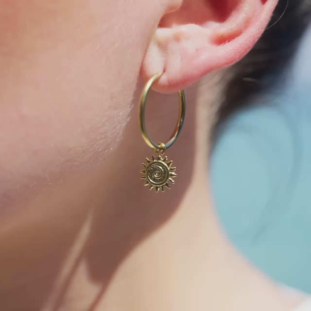 Mit unserem “Sunny Swirl” Hoop Set in der Größe Large trägst du die Sonne und die guten Vibes immer bei dir! Unsere klassischen, sleeken Hoops in Kombination mit dem strahlenden Sonnen Charm sind die perfekte Ergänzung zu jedem deiner Summer Looks und machen dich garantiert zum Hingucker, ob in der City oder auf der heißesten Strandparty.