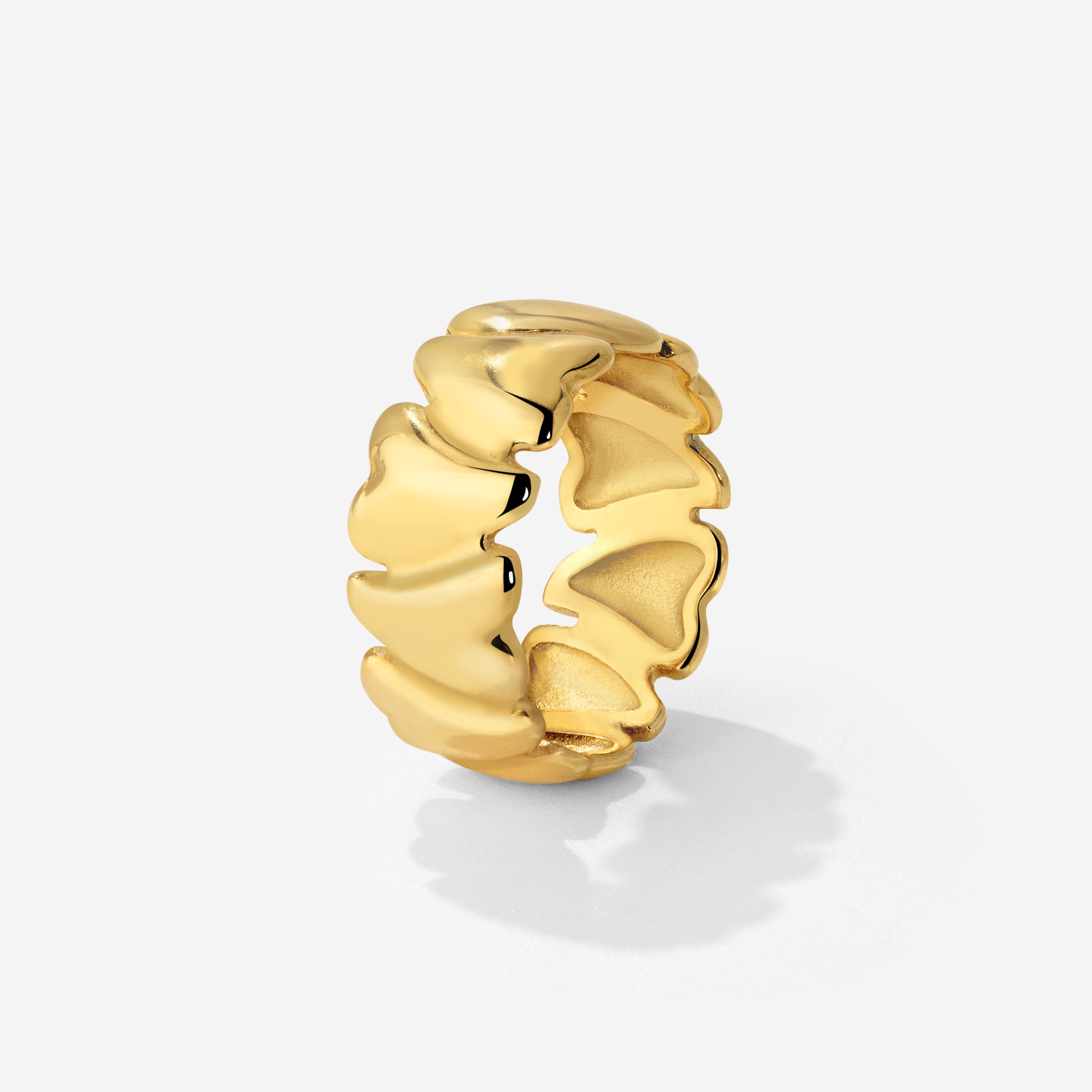 Bold und chunky? Yes please! Unser “Sweetieheart” Ring ist dein neues Lieblingspiece um ein Statement zu setzen, ohne viel drumherum zu brauchen. Die etwas längeren Herzen sind in abwechselnder Richtung aneinandergereiht und machen diesen Ring so zu einem einzigartigen Schmuckstück. Kombiniert mit unseren Herz-Pieces unserer früheren Flowy Heart Collection bekommst du so auch ganz easy deinen matching Look mit dem gleichen Herz Design. Treat yourself and don’t miss out on this one!