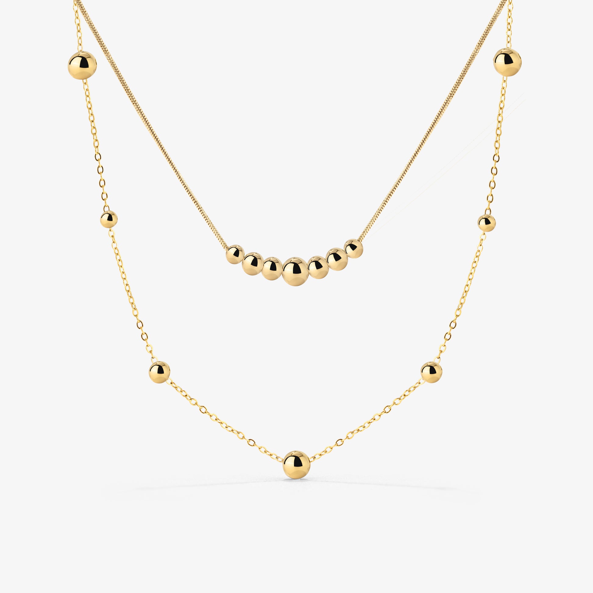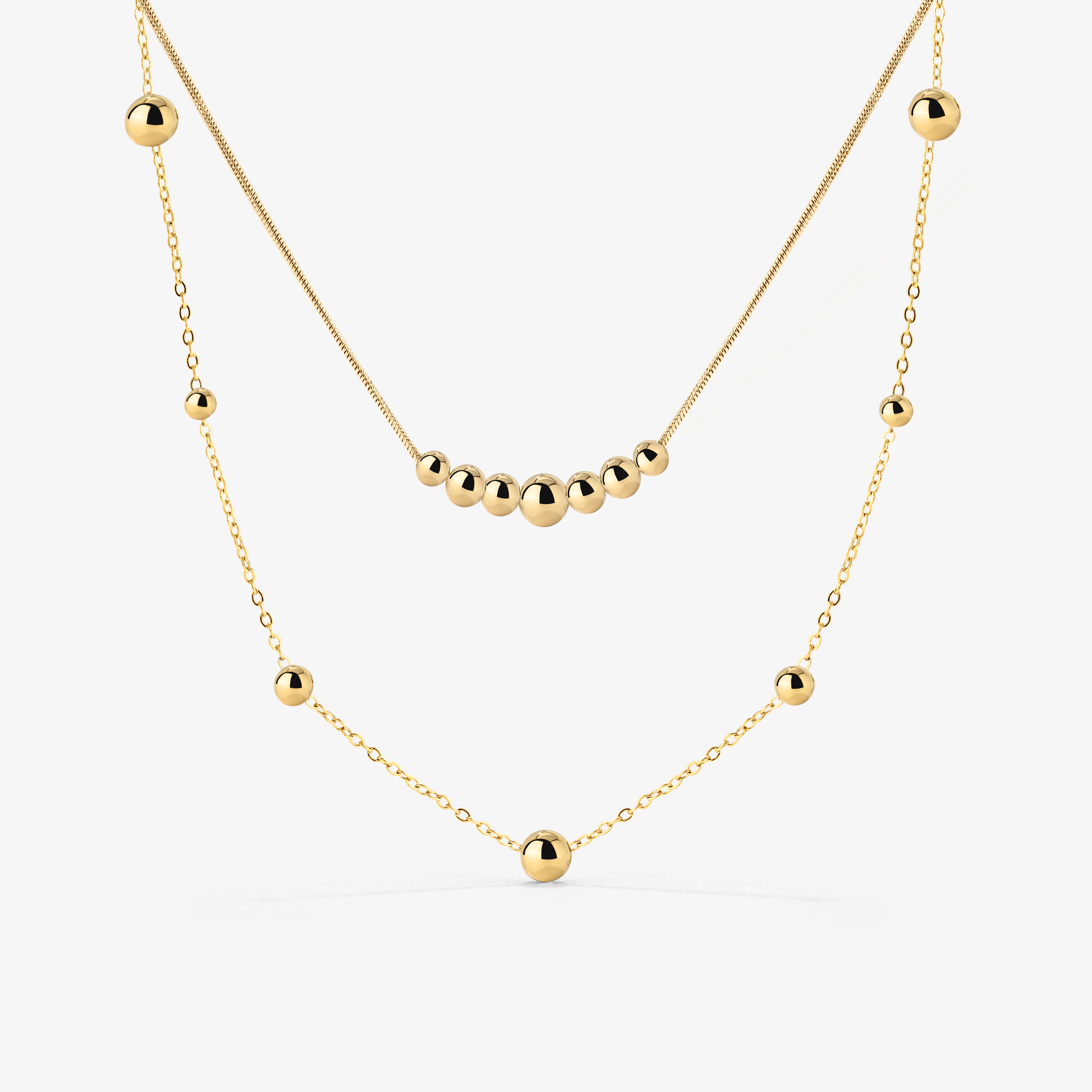 Du kriegst gar nicht genug vom Bead-Design? Dann brauchst du unser “Bead after Bead” Bundle! Hol dir unseren “Curvy Beads” Choker und unsere “Infinite Beads” Necklace gleich im Doppelpack und trage sie als passendes Set zusammen für einen süßen, aber dezenten Layerlook. Die angereihten, unterschiedlich großen Kügelchen sind das Highlight bei beiden Halsketten und ergänzen sich gegenseitig perfekt, sodass du gar nicht lange darüber nachdenken musst, was du wohl tragen kannst. Unser Bundle erledigt es ganz easy für dich!