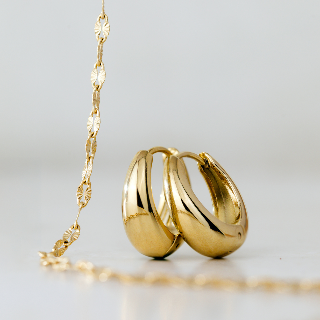 Sanft und zart, aber klassisch und zeitlos, das bekommst du mit unserem “Bestie” Bundle. Während die filigranen Kettenglieder unseres “Emelies Best Friends” Chokers wunderschöne Lichtreflektionen zur Schau stellen, strahlen unsere “Gilded Curve” Hoops auf ihre ganz eigene Art und Weise und lassen auch dich funkeln und leuchten. Trage diese Kombination im Alltag oder für besondere Anlässe und lass dich von der Vielfältigkeit dieser Schmuckstücke überzeugen!
