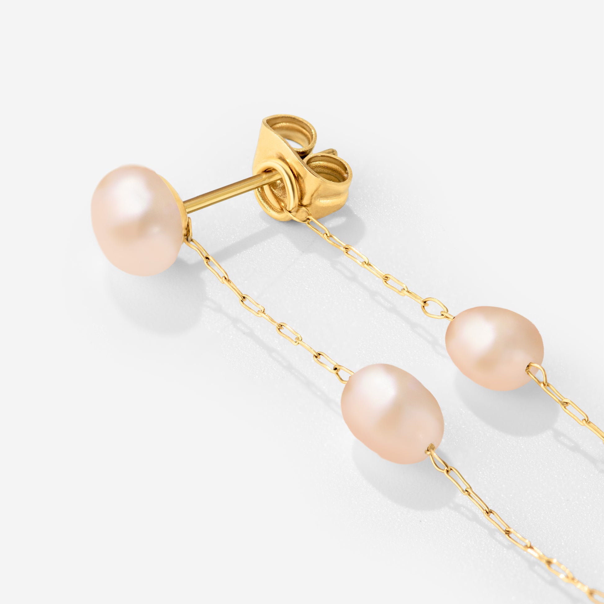 Anmut, Eleganz und Leichtigkeit sind vereint in unseren “Blush Pearl Fall” Earrings. Inspiriert von einem unserer Bestseller sind die einzigartigen Süßwasserperlen bei diesen Ohrringen in einem warmen Rosé Ton gehalten und bringen Wärme in deinen Look. Durch die zarten Ketten schwingen sie dabei sanft bei jeder Bewegung von dir mit und kommen somit vor allem mit hochgesteckten Haaren zur Geltung. Auch wenn du deinen Hals optisch etwas strecken möchtest, eignen sich diese Pieces dafür perfekt! Ganz egal ob du sie an formellen Anlässen strahlen lässt oder ein Statement in deinem Alltag setzen möchtest, diese Ohrringe bringen deine versteckte Vintage Soul an die Oberfläche.
