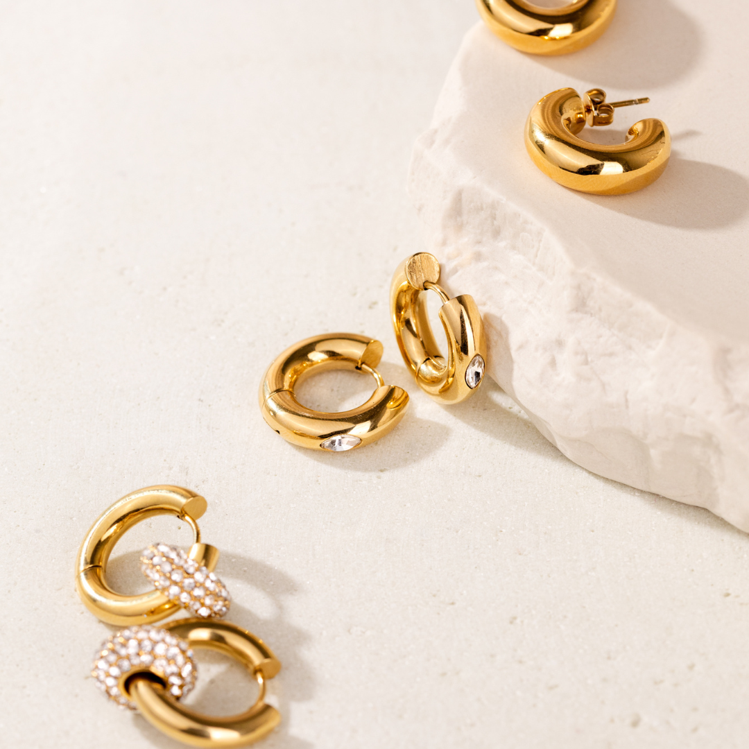 Und womit wäre ein Glow Up besser möglich als mit einem Charm der ein bisschen bold, ein bisschen sparkly und definitiv auffällig ist? Unser "Chunky Radiant Wheel" Hoop Set ist die perfekte Kombination aus filigranen, edel wirkenden Zirkonia Steinchen und einem bulky Charm. In Verbindung mit unserem Chunky Hoop ergibt sich ein echter Hingucker Ohrring, der deinem Earcandy Game garantiert ein Upgrade gibt!