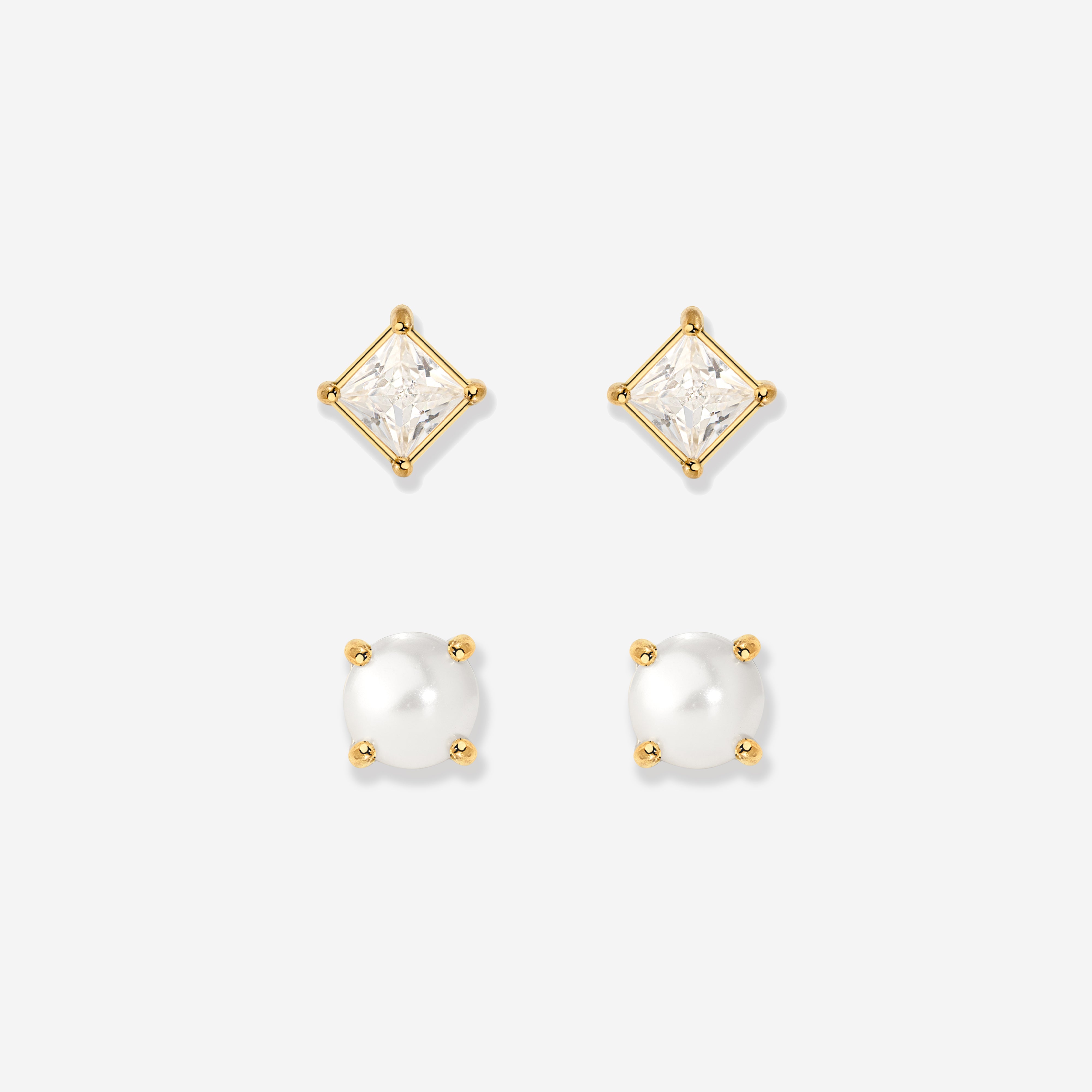 Unser “Full of Dreams” Stud Bundle ist das Set deiner Träume und verbindet modernes Glitz & Glam mit klassischen Perlen für einen dezenten, aber ausdrucksstarken Look. Such dir aus, ob du unsere “Dream Pearl” Studs mit Perlen im ersten und unsere “North Star” Studs mit Zirkoniasteinen im zweiten Ohrloch tragen willst oder umgekehrt. Wenn du drei Ohrlöcher hast, kannst du sie alternativ auch als kleinen Akzent für Hoops oder andere Hängerohrringe verwenden. Finde deinen Lieblingsstyle und lass dir dieses Bundle nicht entgehen!