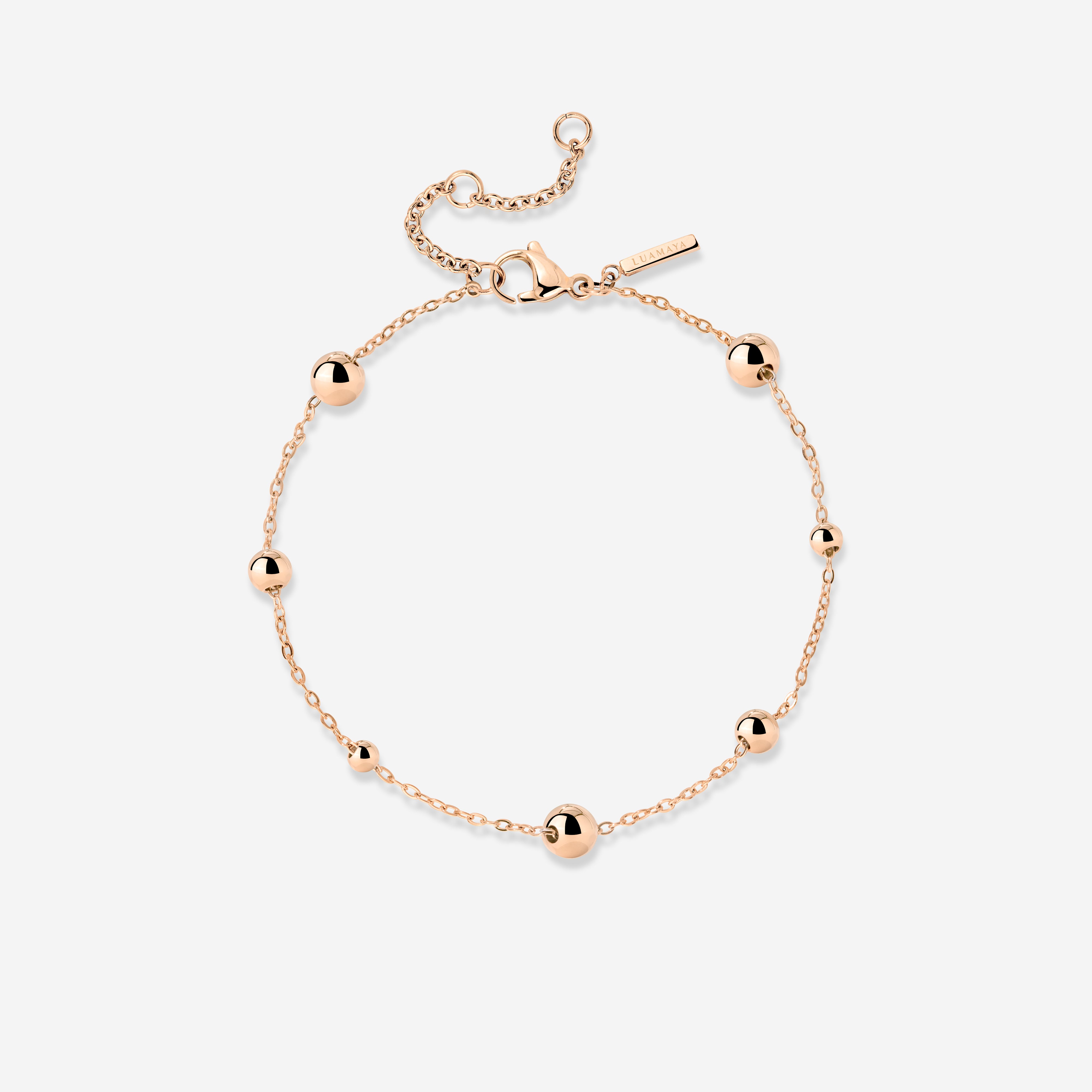 Passend zu unserer “Infinite Beads” Necklace, wird unser “Infinite Beads” Necklace bestimmt auch sehr schnell zu deinem neuen Lieblingspiece. Unterschiedlich große Beads verzieren die filigrane Chain in regelmäßigen Abständen und geben dem Armband so einen verspielten, aber dennoch dezenten und minimalistischen Look. Ganz egal ob du es alleine, im matching Set mit unserer Necklace, oder im Layerlook mit unseren anderen Armbändern tragen willst, mit diesem Schmuckstück kannst du absolut nichts falsch machen!