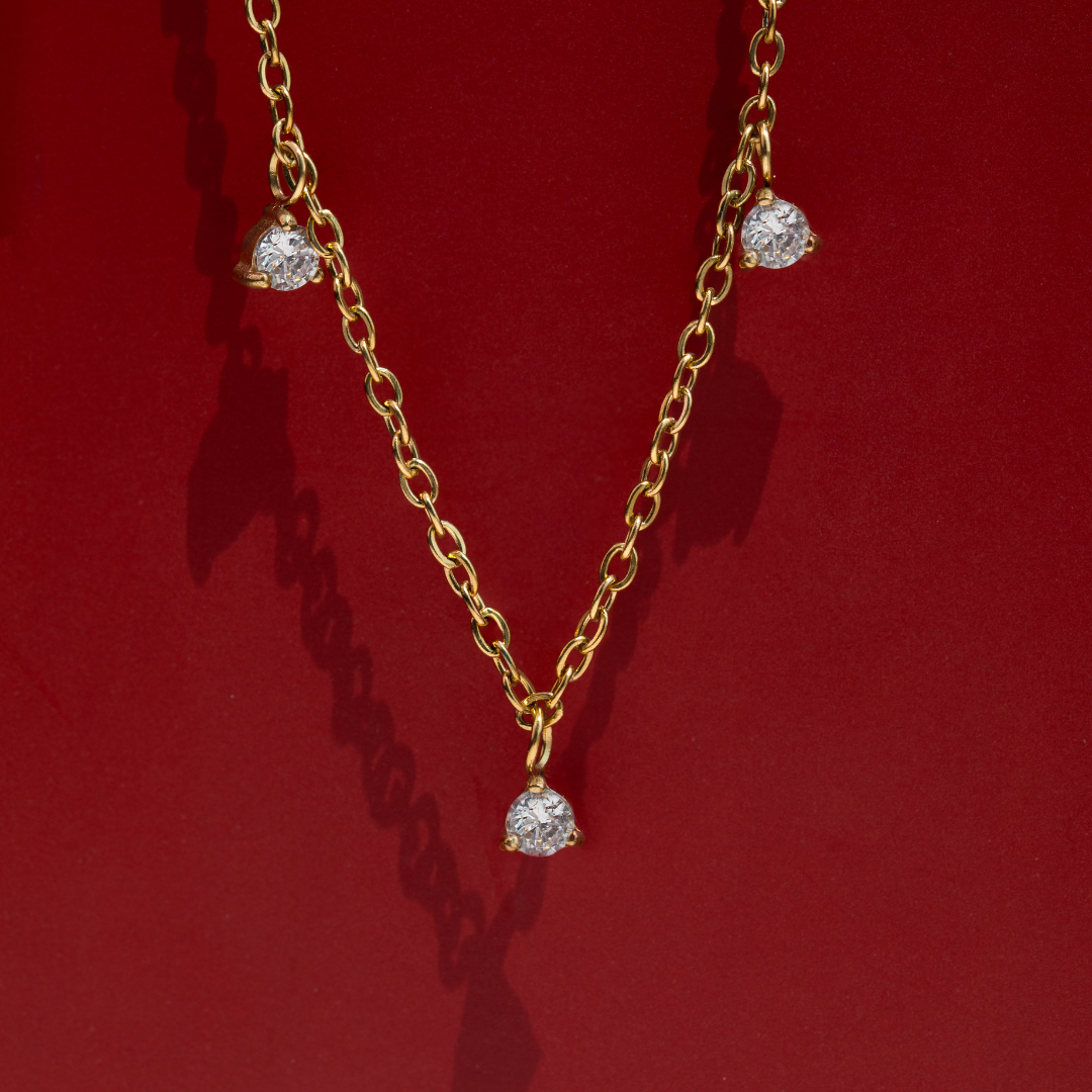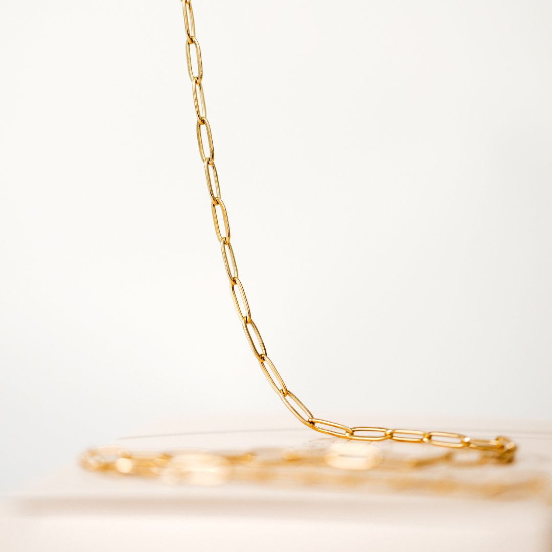 Die Schmuckstücke werden aus 316L Edelstahl gefertigt und besitzen je nach Farbe eine 14 karätige Vergoldung. Sie sind hypoallergen und 100% wasserresistent.