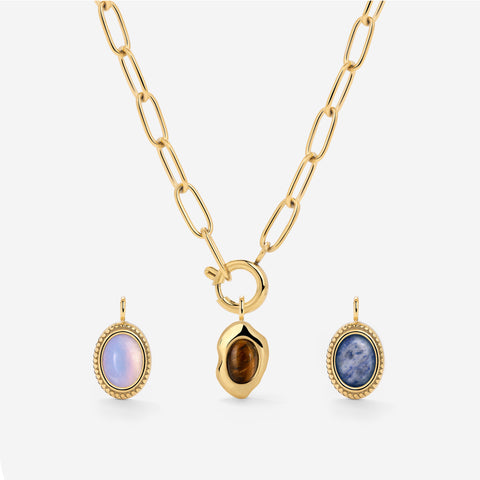Mix&Match Lover aufgepasst, hier kommt was Aufregendes! Unser “Pearly” Charm Necklace Set ist die neueste Ergänzung zu unserem Mix&Match Kettensystem und bringt dir endlich eine Perlenkette, die du beliebig mit unseren Necklace Charms kombinieren kannst. Die strahlenden Süßwasserperlen sind zeitlos und elegant und geben deinen Outfits einen classy Touch. Lass deiner Kreativität freien Lauf und tob dich mit unseren Halskettenanhängern nach Lust und Laune aus, um deinen ganz individuellen Style zu kreieren!